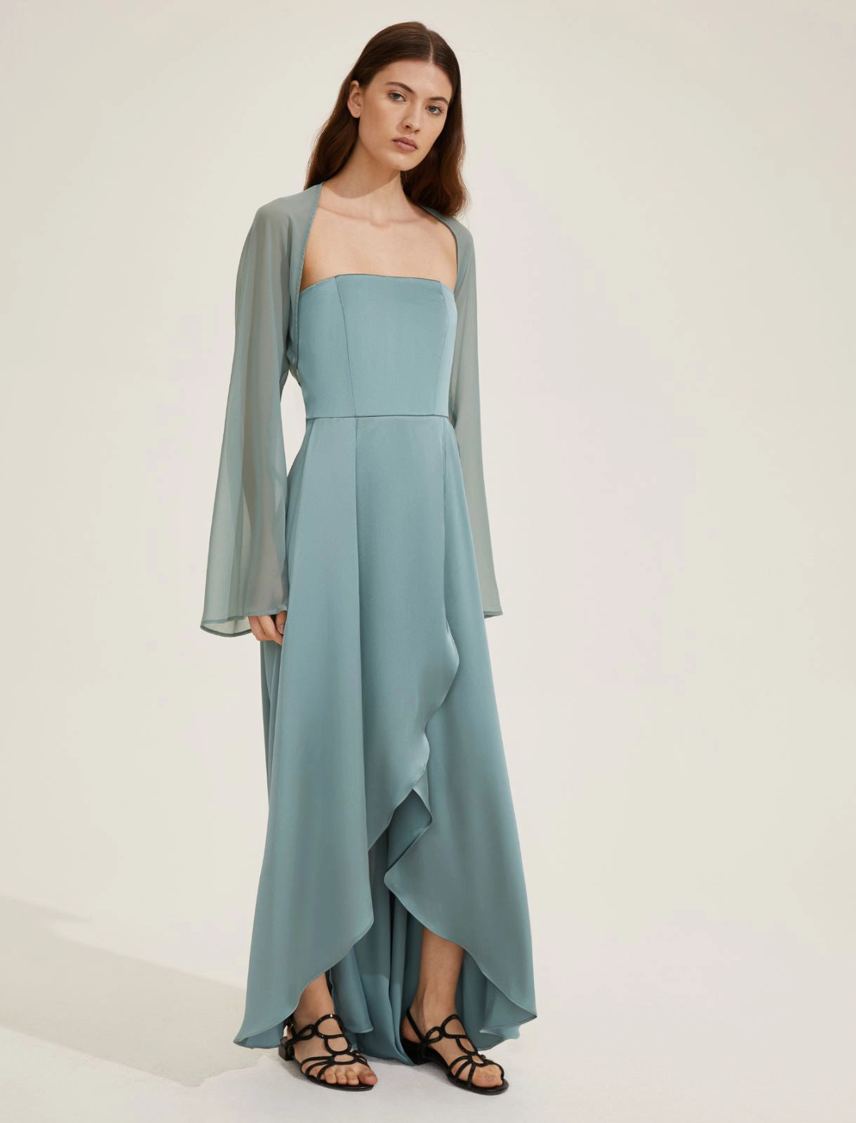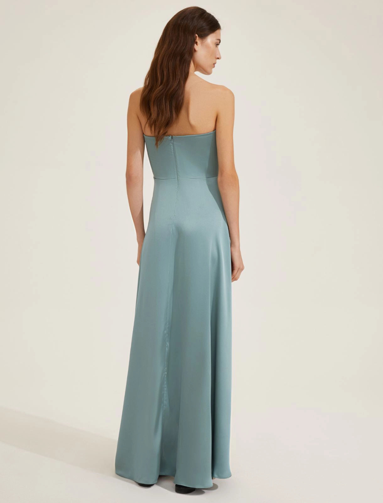 Elegante e senza compromessi, l'Abito raso bustino è l'ideale per le tue occasioni speciali. Con un bustino aderente e una morbida gonna a portafoglio, mette in risalto il tuo décolleté. Completa il tuo look con stiletto e pochette scintillanti.