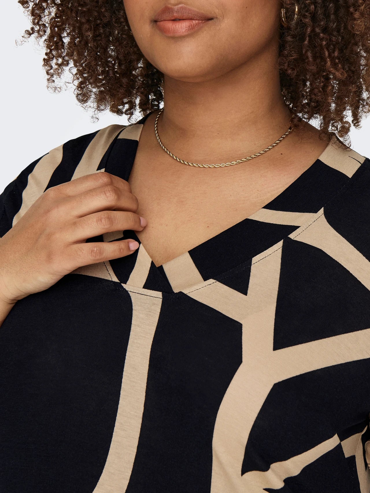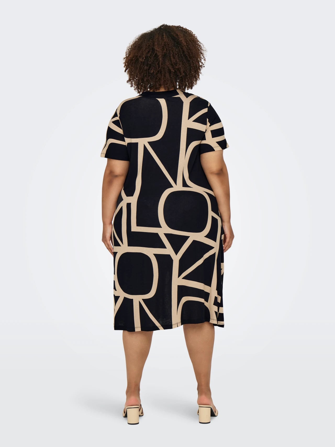 Questo vestito stampa lettere di ONLY CARMAKOMA è perfetto per ogni occasione, dal lavoro alla scuola. La sua vestibilità Regular Fit e il collo a V ti faranno sentire comoda e alla moda, mentre le maniche corte e la lunghezza media ti daranno libertà di movimento. Indossa questo vestito e sentiti splendida ogni giorno.