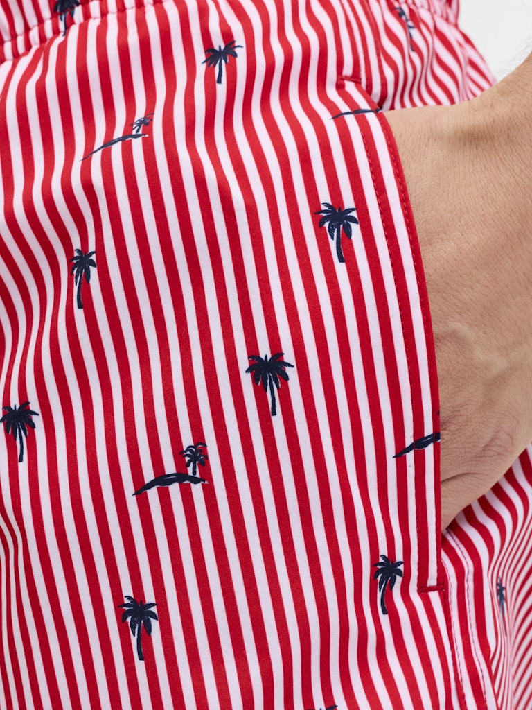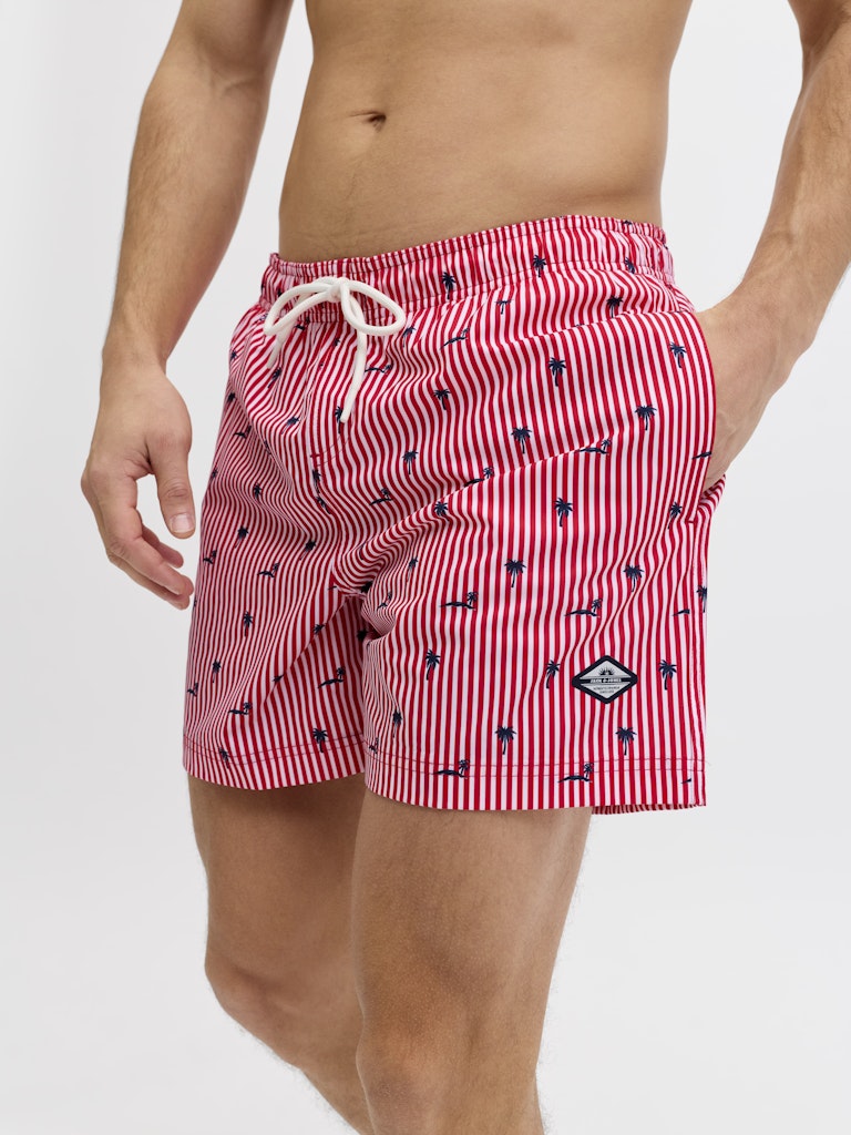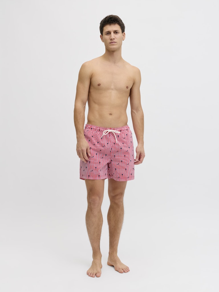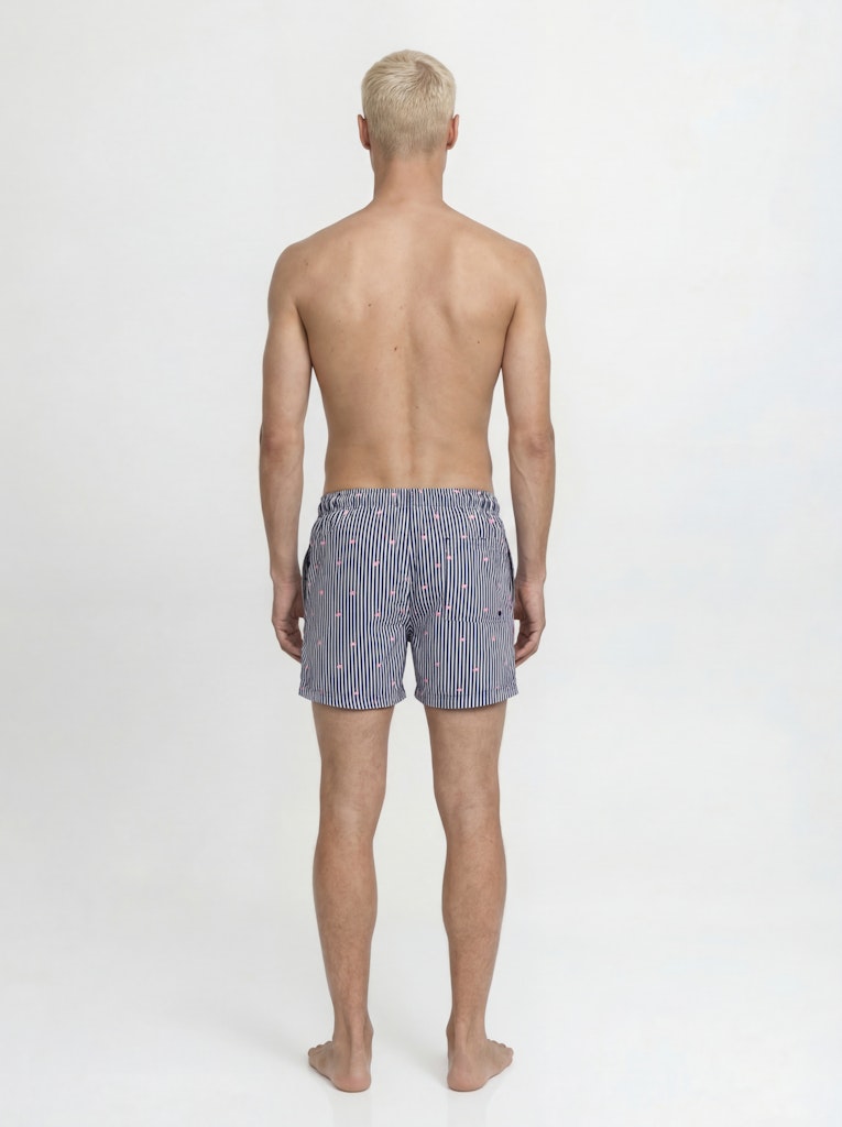 Il costume da bagno che porta colore e stile in spiaggia: il boxer mare rigato di Jack & Jones in 100% poliestere riciclato porta la sostenibilità direttamente in acqua, con un tessuto realizzato da fibre riciclate che riduce l’impatto ambientale senza compromettere le prestazioni. Il tessuto intrecciato — robusto e dimensionalmente stabile, che non si allunga come i tessuti a maglia — mantiene la forma e il colore anche dopo ripetute esposizioni all’acqua salata e al cloro, garantendo una durata superiore nel tempo. La stampa ripetuta su tutta la superficie — il pattern rigato che copre uniformemente il costume — porta un look vivace e di grande impatto visivo, perfetto per distinguersi in spiaggia. La coulisse in vita garantisce una vestibilità regolabile e sicura, mentre le tasche frontali aggiungono funzionalità pratica. La vestibilità Regular Fit completa un costume versatile e confortevole per tutto il giorno.