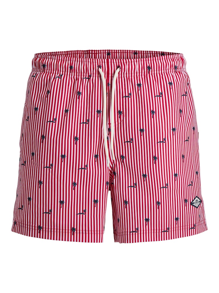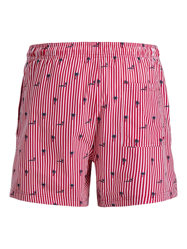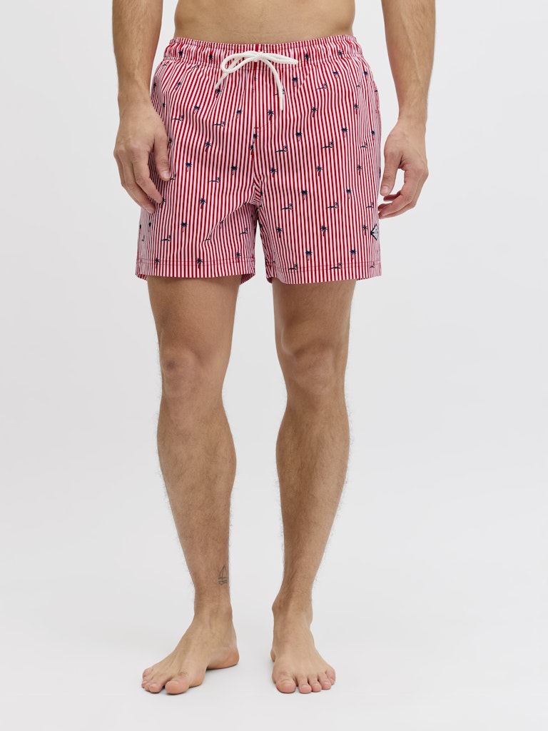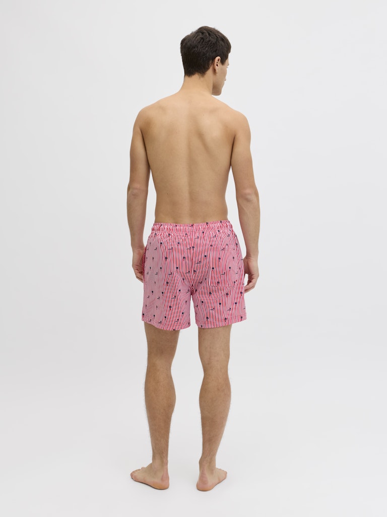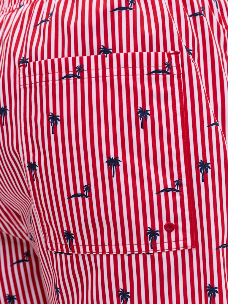 Il costume da bagno che porta colore e stile in spiaggia: il boxer mare rigato di Jack & Jones in 100% poliestere riciclato porta la sostenibilità direttamente in acqua, con un tessuto realizzato da fibre riciclate che riduce l’impatto ambientale senza compromettere le prestazioni. Il tessuto intrecciato — robusto e dimensionalmente stabile, che non si allunga come i tessuti a maglia — mantiene la forma e il colore anche dopo ripetute esposizioni all’acqua salata e al cloro, garantendo una durata superiore nel tempo. La stampa ripetuta su tutta la superficie — il pattern rigato che copre uniformemente il costume — porta un look vivace e di grande impatto visivo, perfetto per distinguersi in spiaggia. La coulisse in vita garantisce una vestibilità regolabile e sicura, mentre le tasche frontali aggiungono funzionalità pratica. La vestibilità Regular Fit completa un costume versatile e confortevole per tutto il giorno.