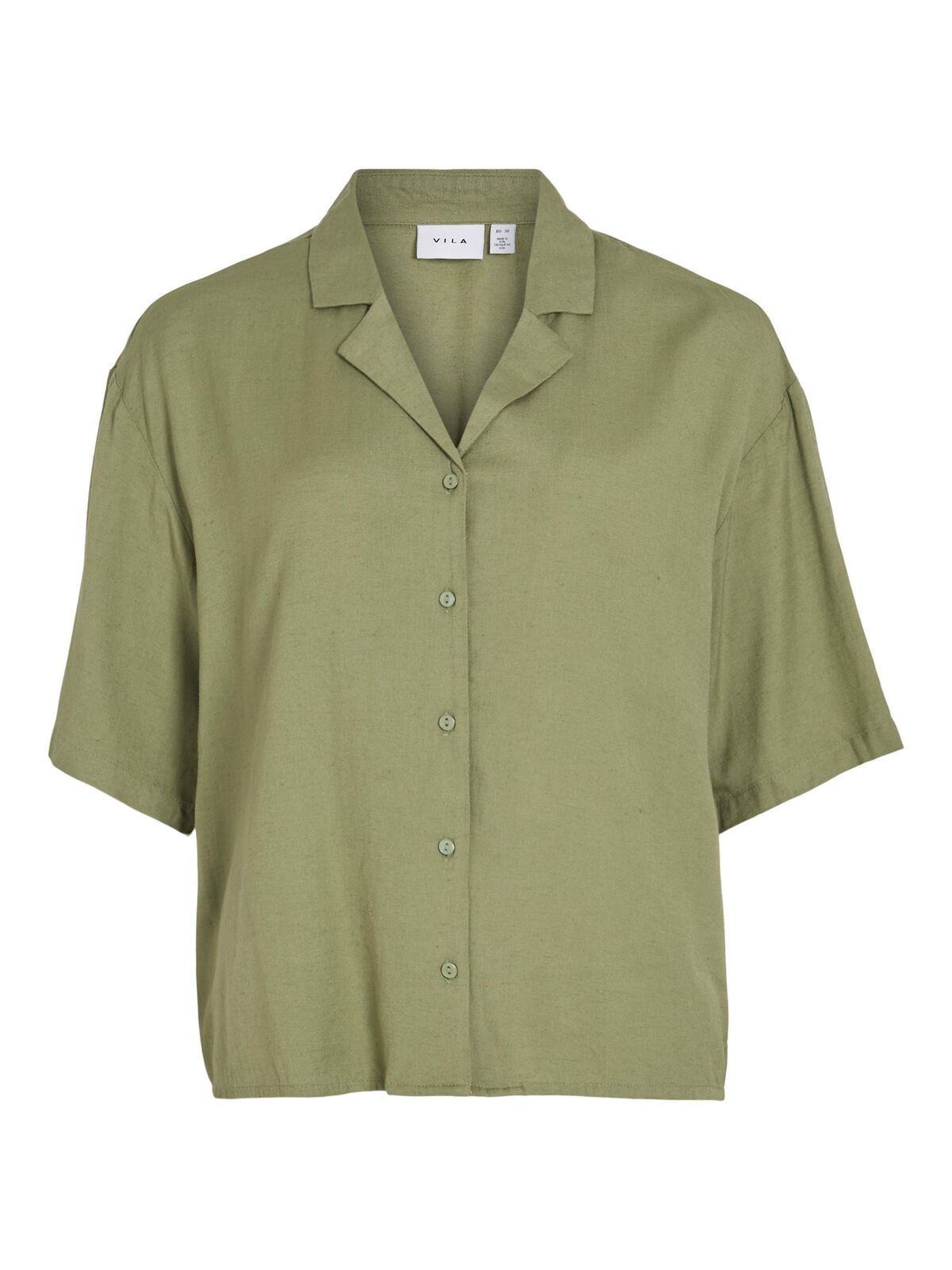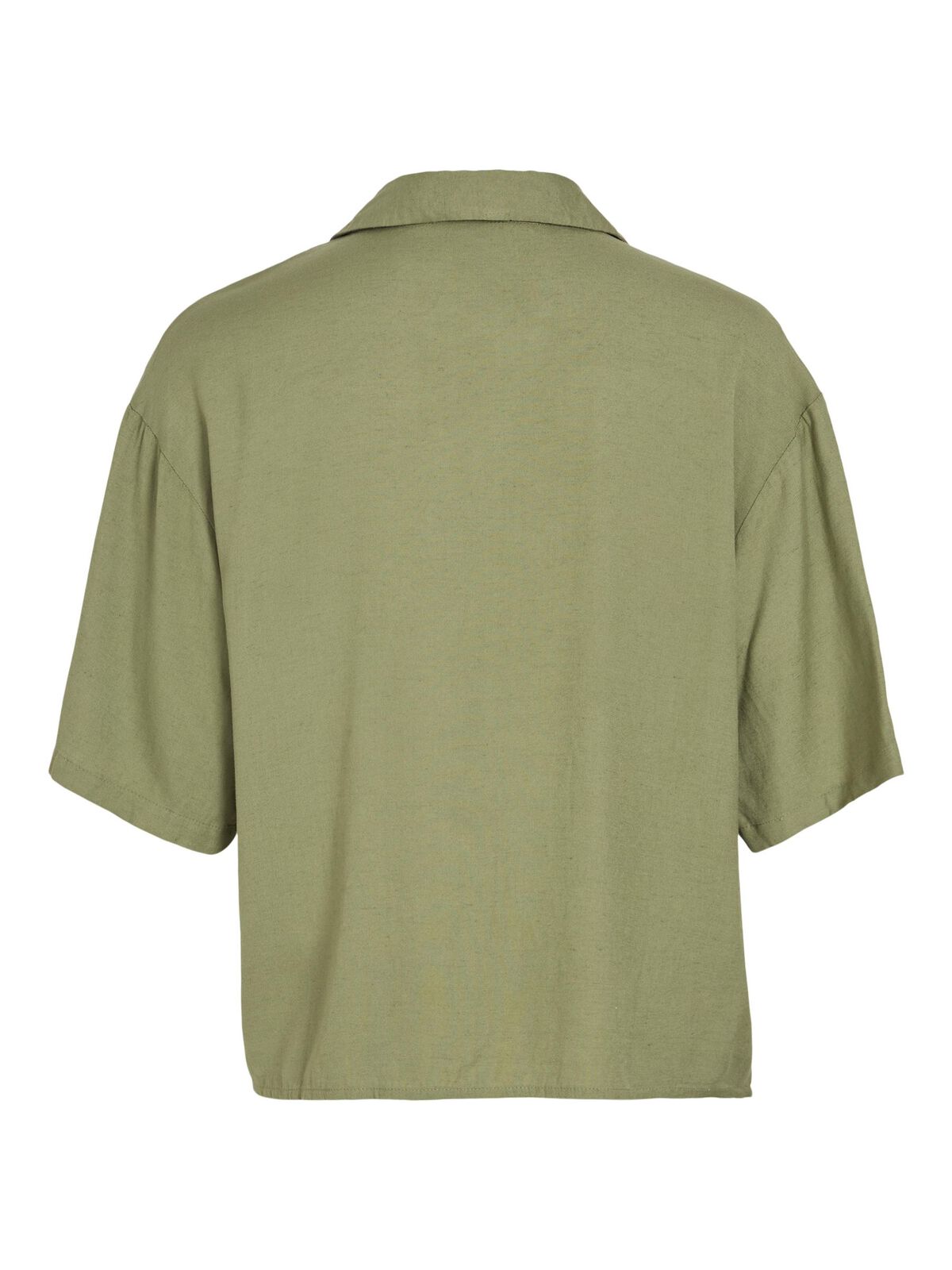 Questa camicia a maniche corte con collo rever ha uno stile unico, con spalle cadenti e scollo a V. L'abbottonatura frontale la rende facile da indossare, mentre la linea morbida la rende comoda e adatta a qualsiasi occasione.