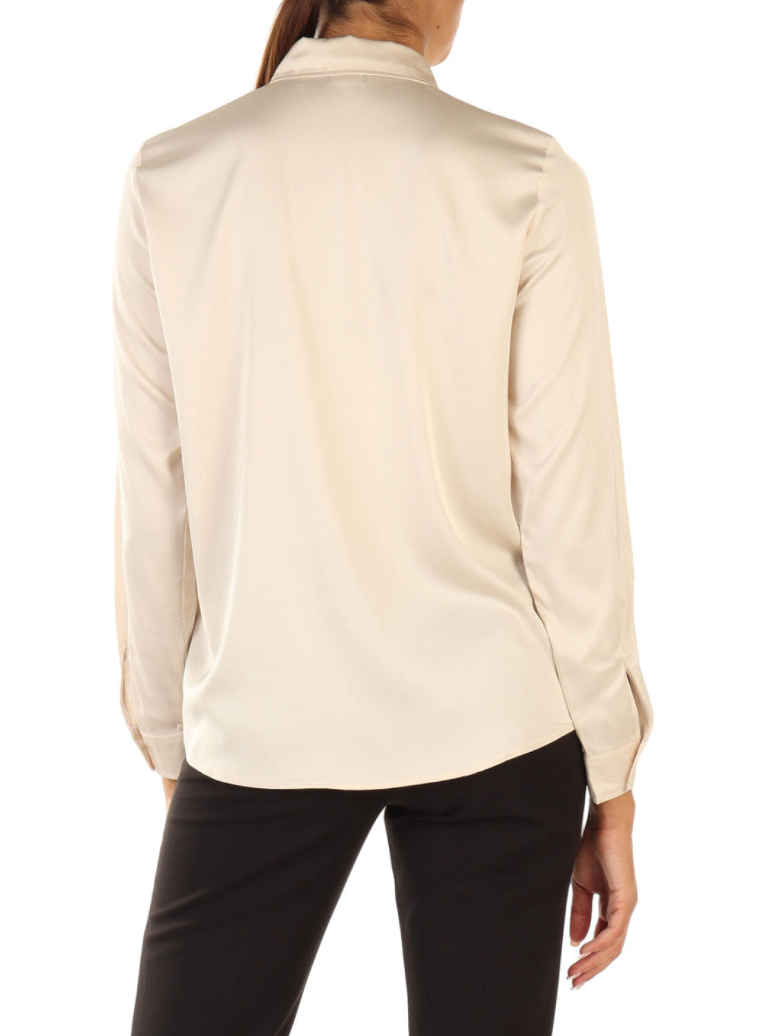 Cod.ZIGANO1 Camicia in raso stretch, linea semi aderente, collo a camicia, maniche lunghe con polso e allacciatura ad un bottone, allacciatura cannoncino con bottoni sul davanti a vista.