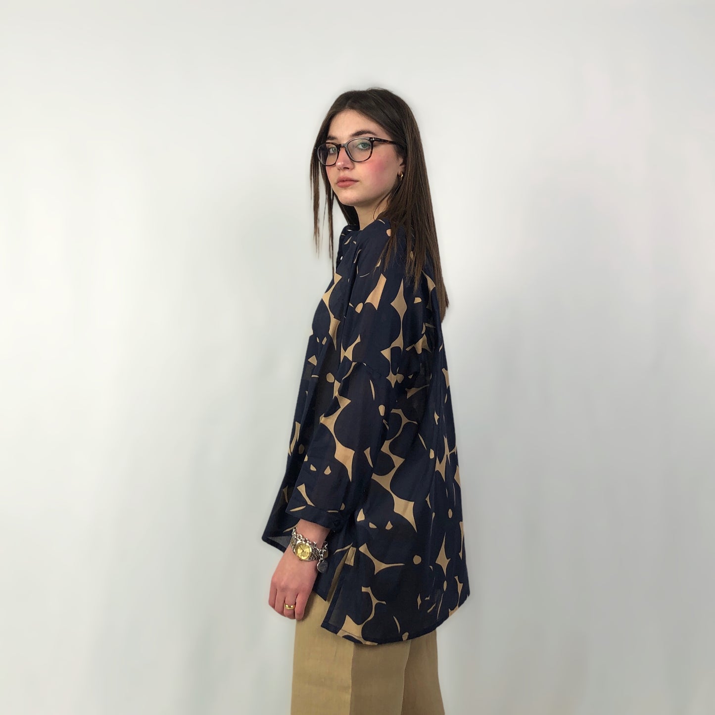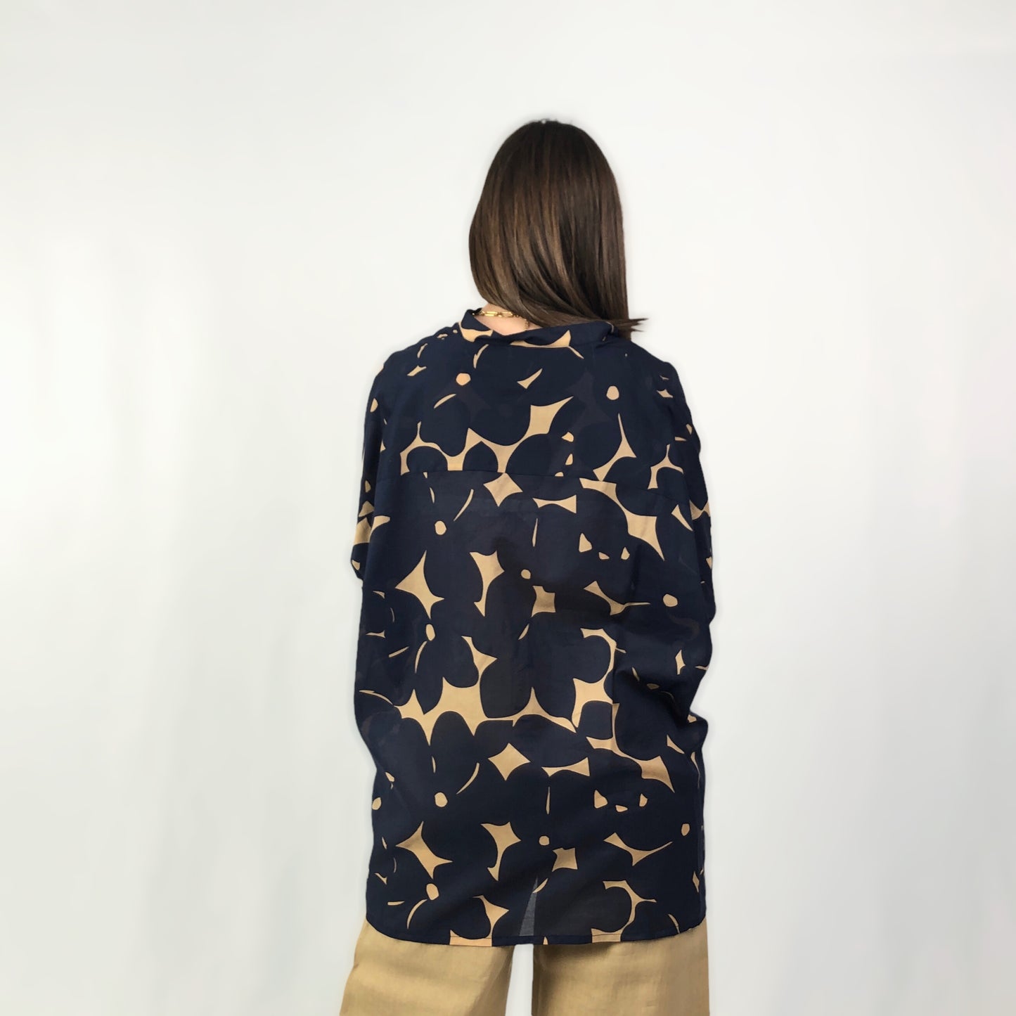Cod.604T56 Camicia over a maniche lunghe in fantasia floreale e collo alla coreana.