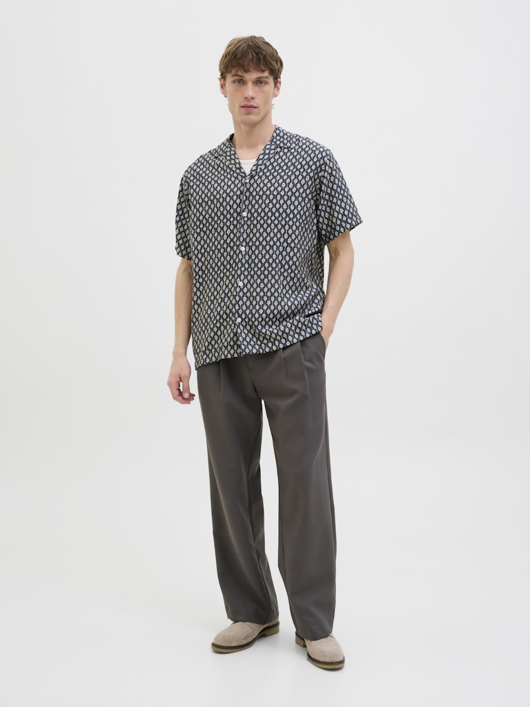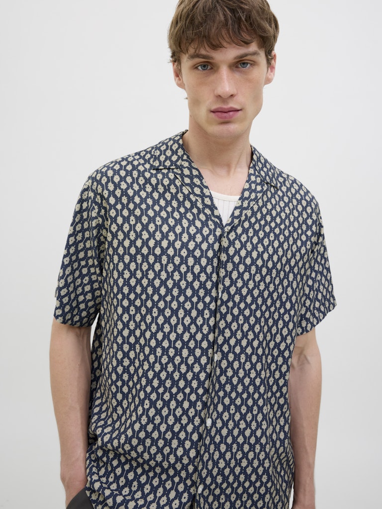 Questa camicia fantasia con chiusura a bottoni e colletto hawaiano offre una vestibilità relaxed fit, perfetta per un comfort senza rinunciare allo stile. Ideale per l’estate, aggiunge un tocco fresco, divertente e colorato al tuo look da spiaggia. Preparati a vivere giornate spensierate con un capo leggero e vivace!
