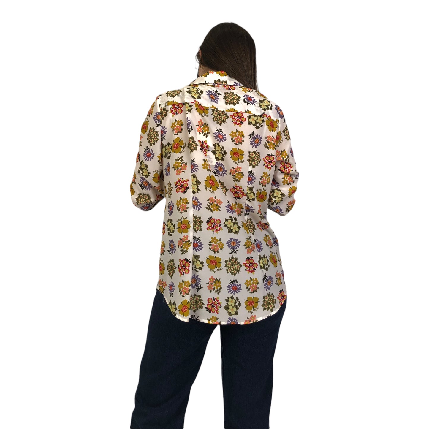 Cod.DC4653 Camicia a maniche lunghe in fantasia floreale con maniche lunghe, colletto a uomo e fondo stondato.