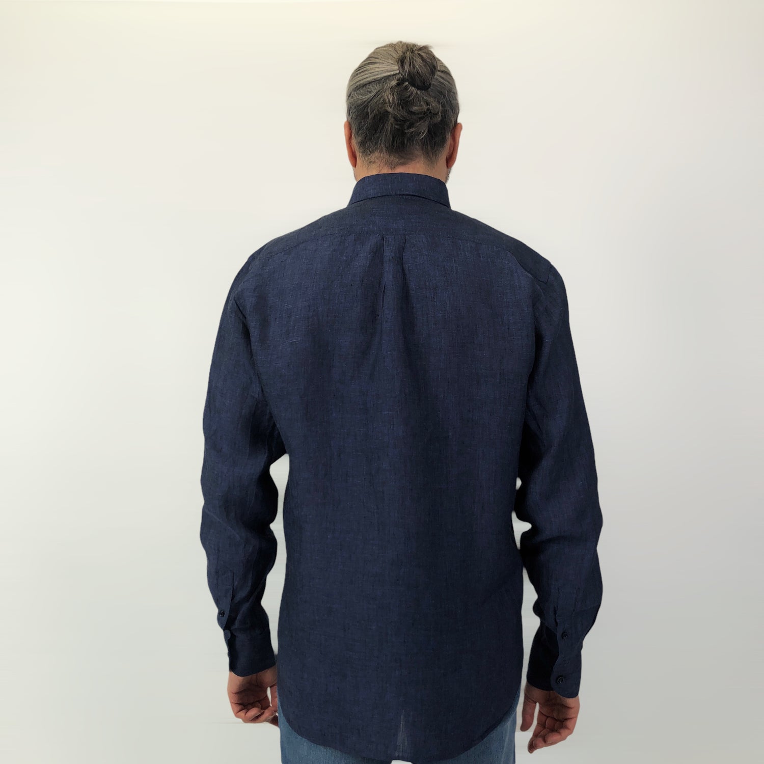 Cod.CRH014-010883M Camicia in puro lino con collo button down e dettagli a contrasto nei polsi. Piega dietro per una maggiore vestibilità e logo ricamato sul davanti.