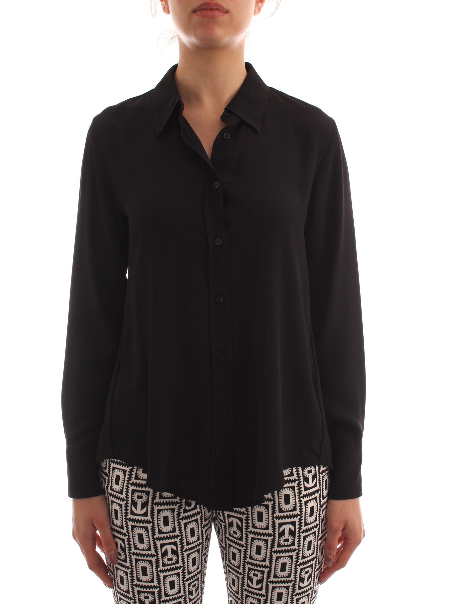 Cod.BIANCA Camicia in misto seta con colletto, linea morbida, bottoni davanti ed ai polsi. Fondo asimmetrico sul retro.