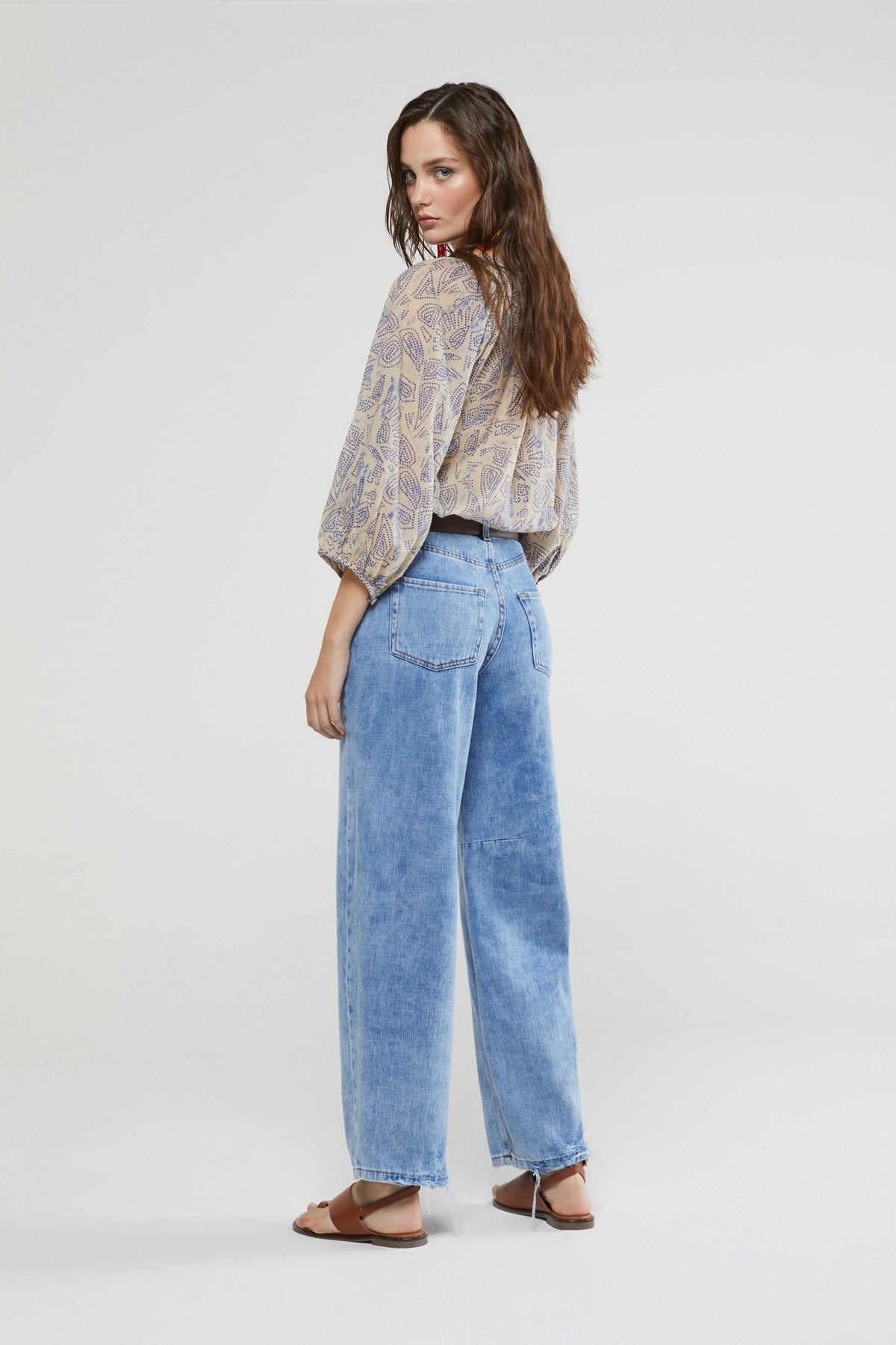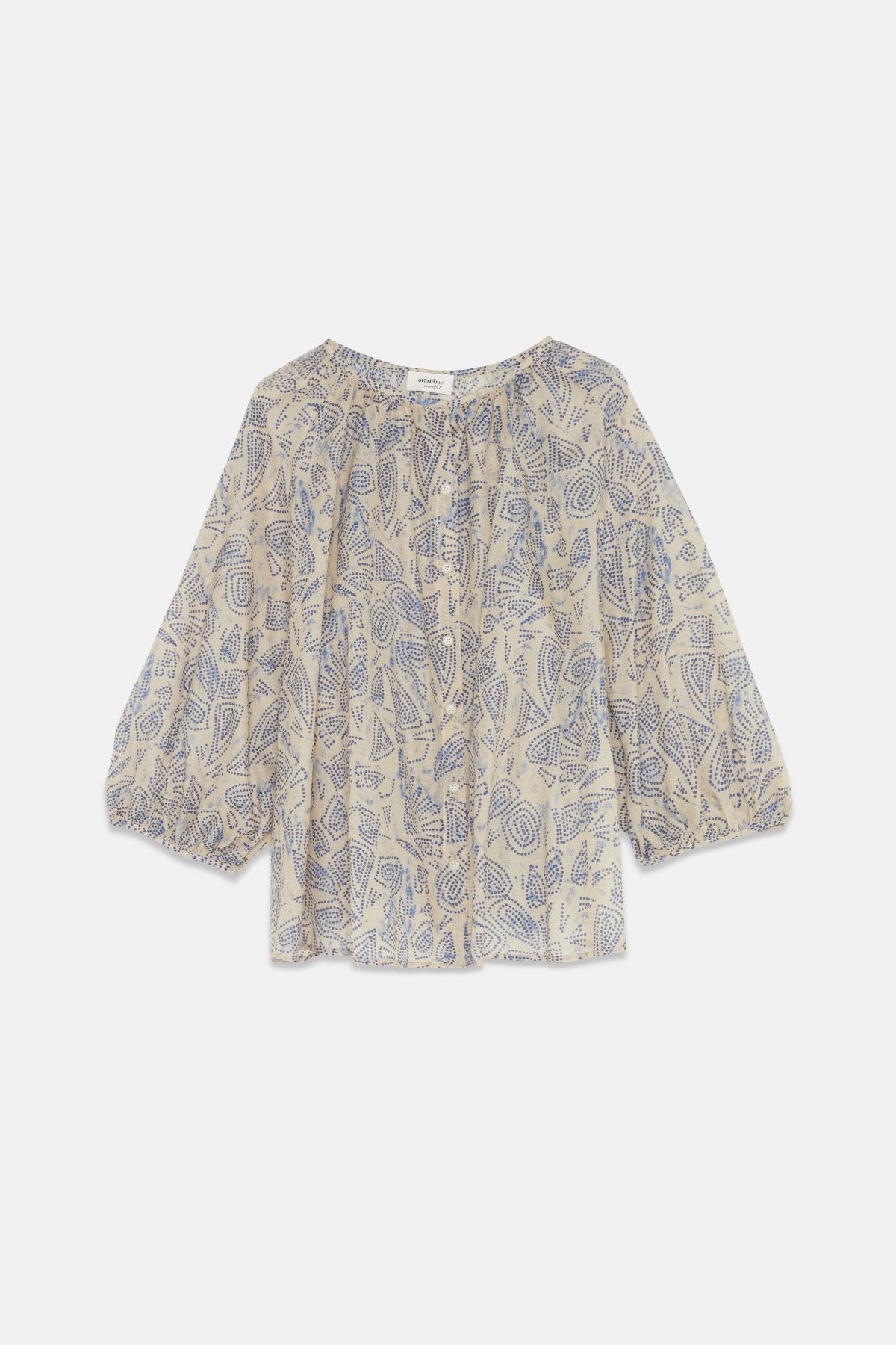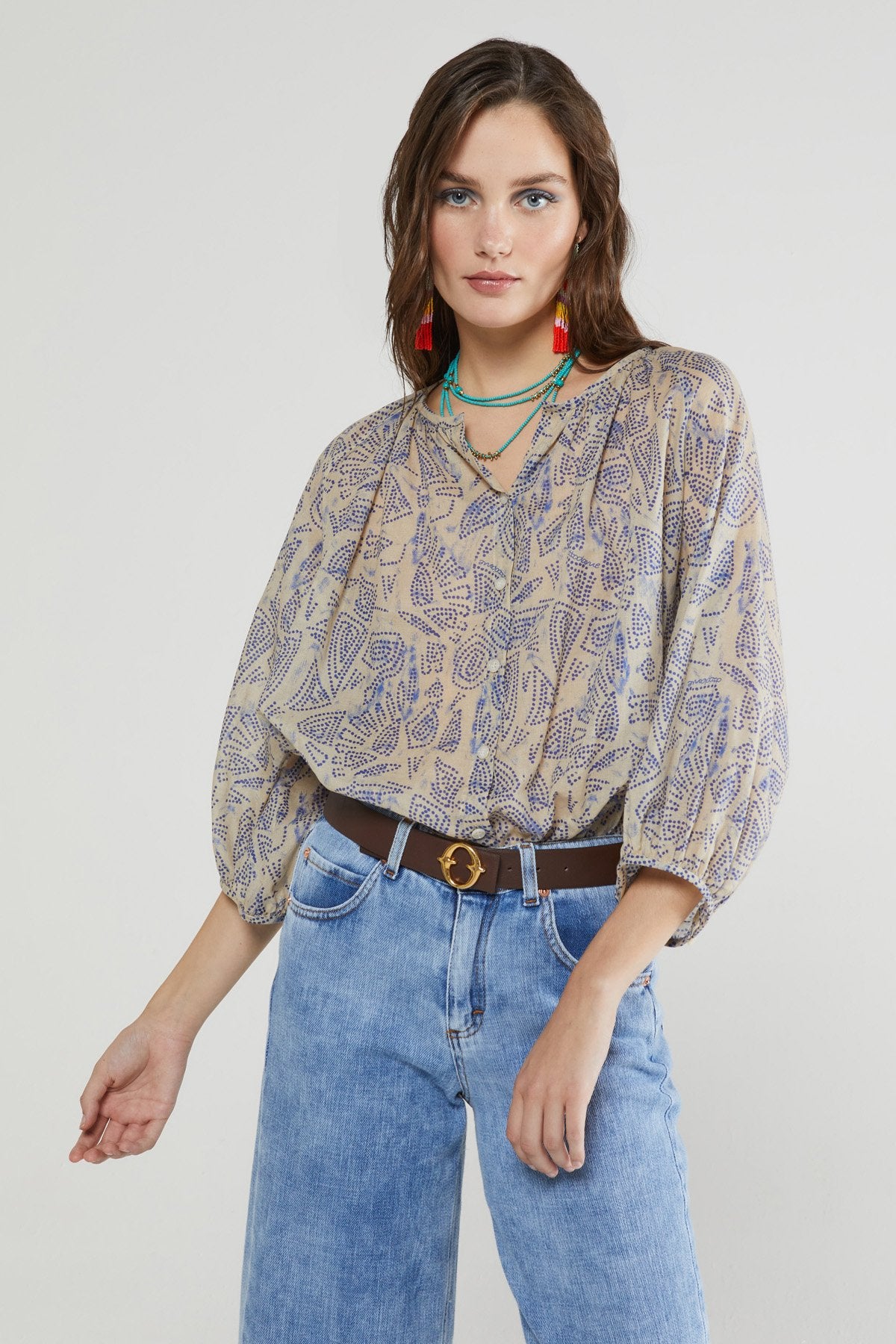 Camicia in puro cotone stampato con maniche a palloncino