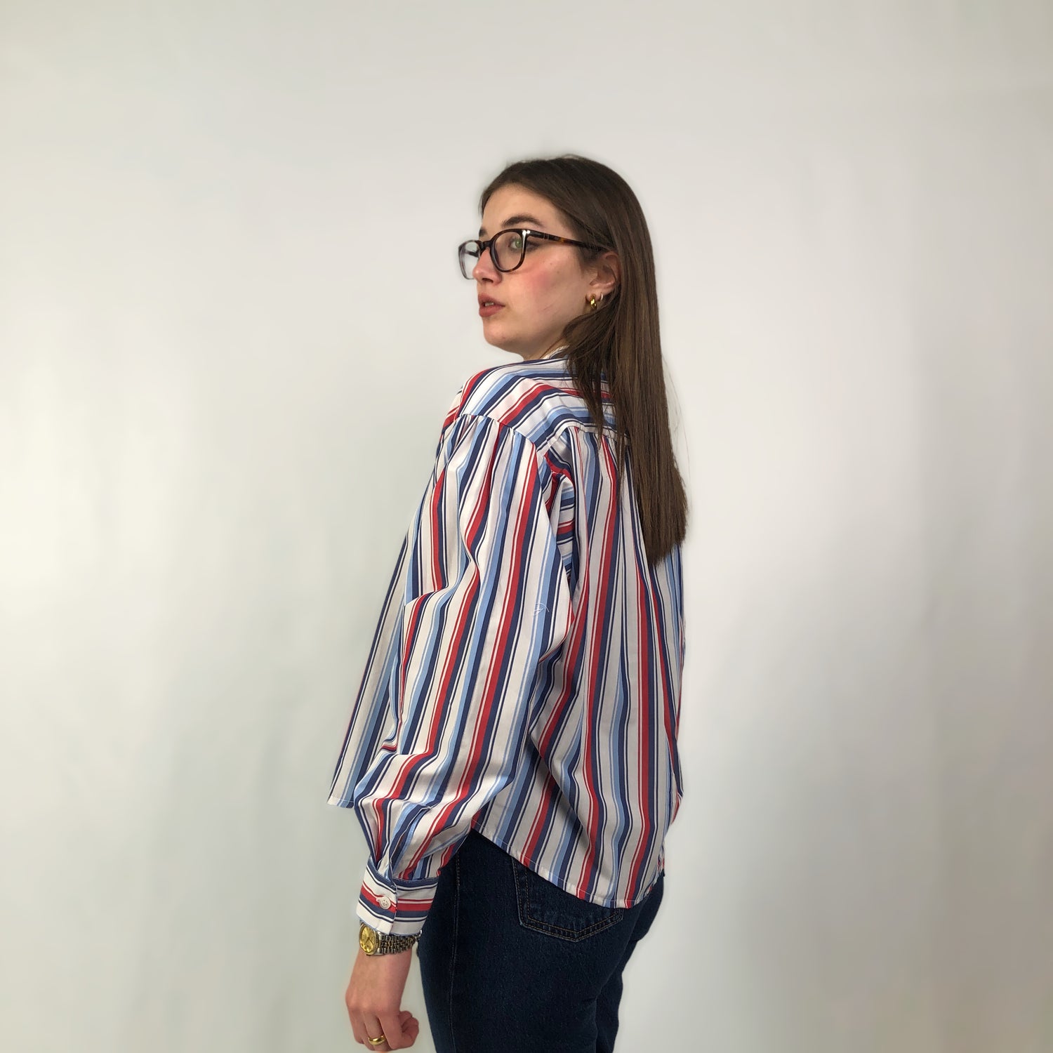 Cod.DC4620 Camicia cropped in puro cotone con collo alla coreana e maniche lunghe