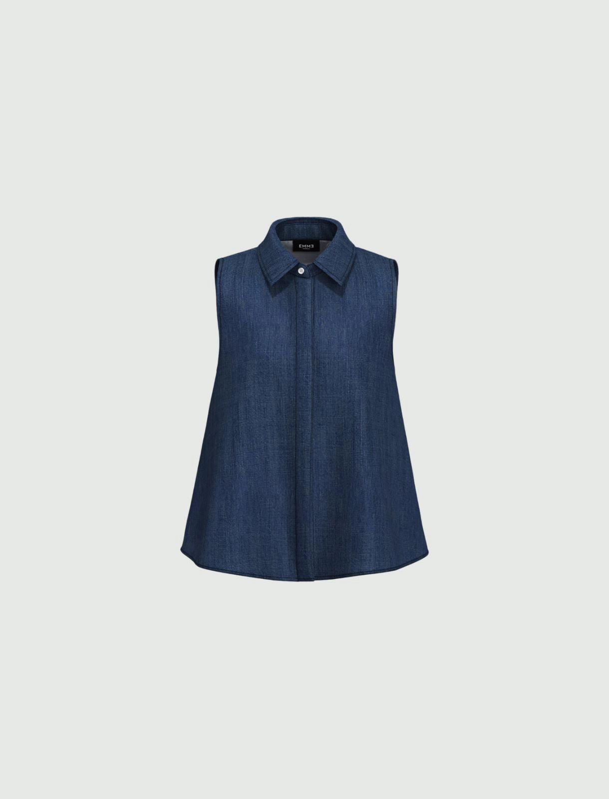 Aggiungi un tocco di stile alla tua collezione di camicie con questa camicia smanicata in chambray leggero. Realizzata con la migliore qualità di tessuto tencel, la sua linea svasata la rende perfetta per essere abbinata ai tuoi preferiti 5 tasche o alle gonne più leggere. Elegante e versatile, è sicuramente un must-have per la tua stagione di moda.