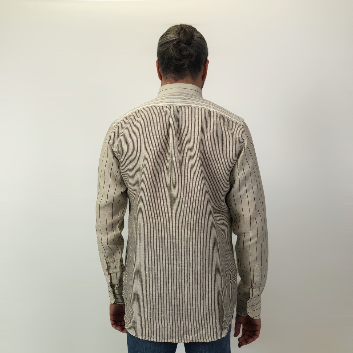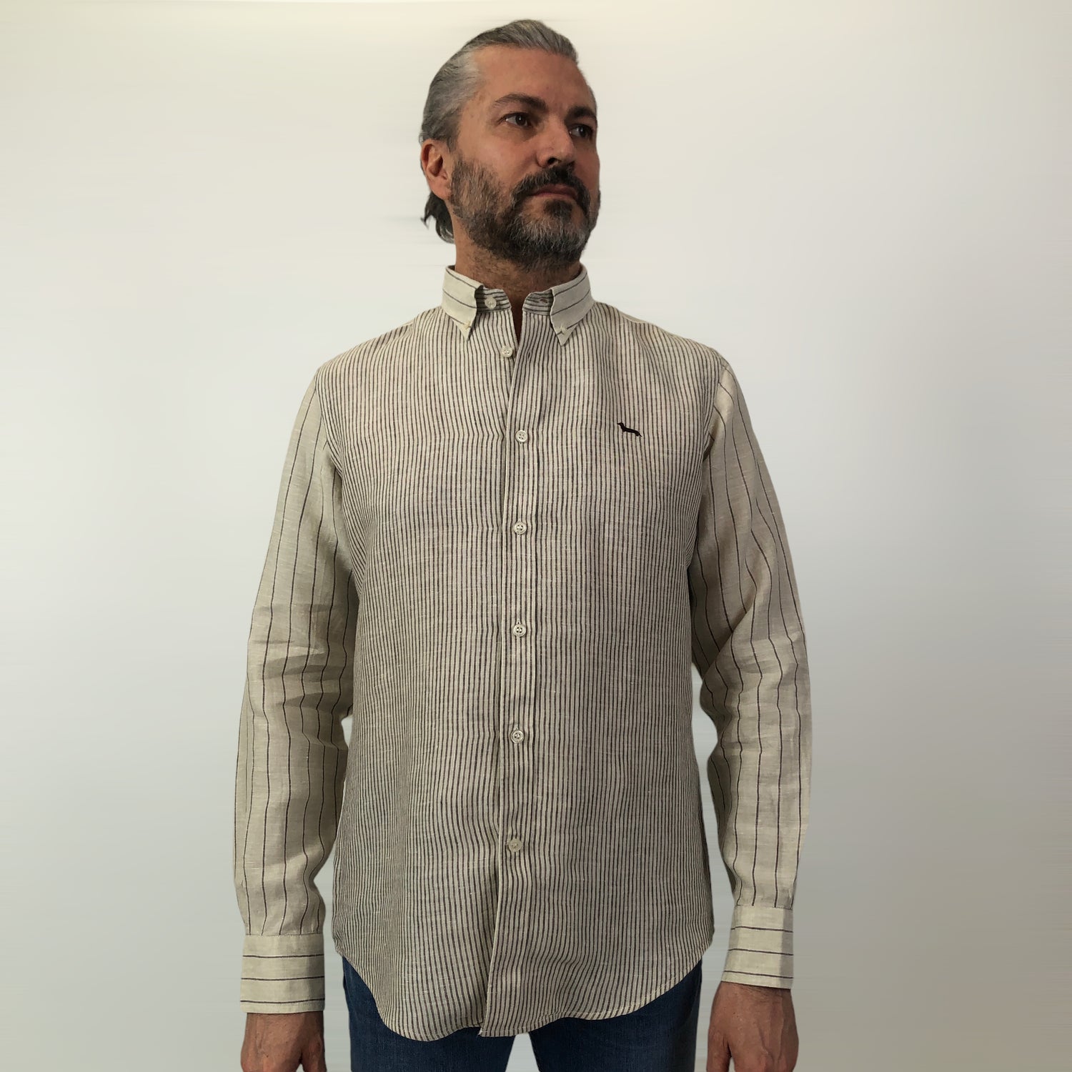 Cod.CRH003-011871 Camicia in puro lino, con modello regular fit a righe presenta maniche e carré a contrasto, colletto button down e polsini e chiusura con bottoni. Il logo è ricamato sul davanti.