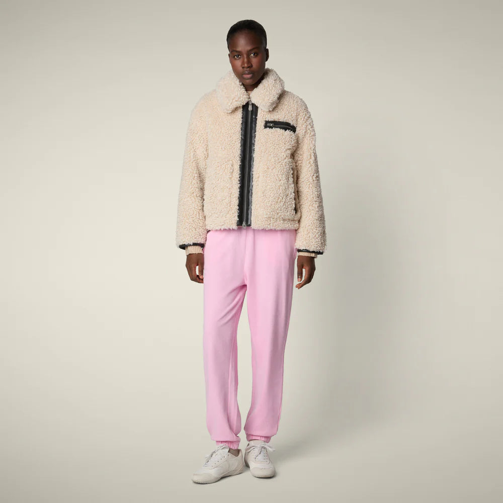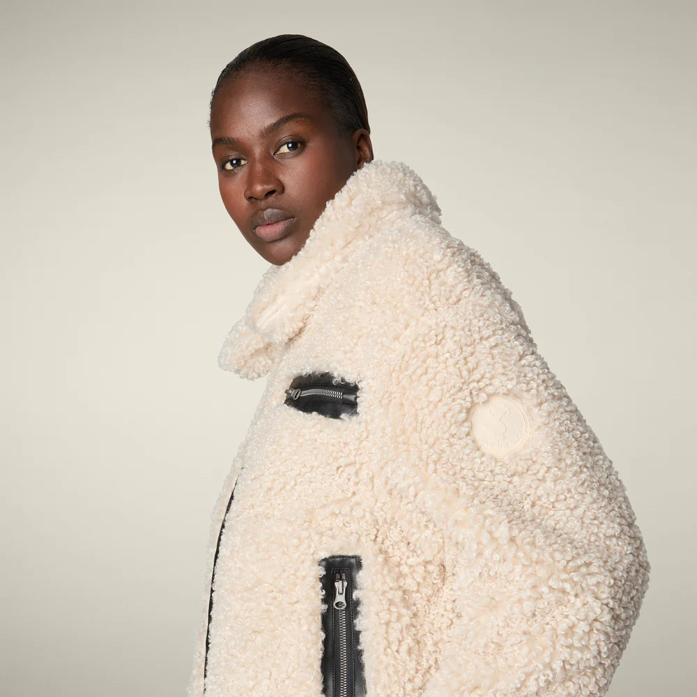 Realizzata in 100% poliestere riciclato con pelliccia sintetica riccia che offre morbidezza e calore. La trapuntatura interna garantisce isolamento termico efficace, mentre i dettagli emblematici Save the Duck conferiscono un tocco distintivo.