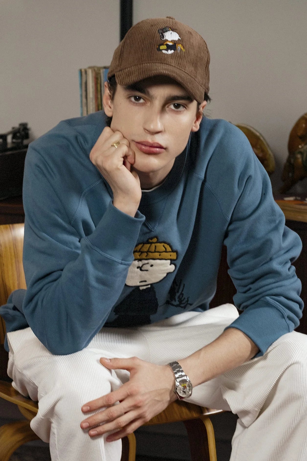 Felpa girocollo con stampa Charlie Brown sul petto. Fondo e polsi a costine.