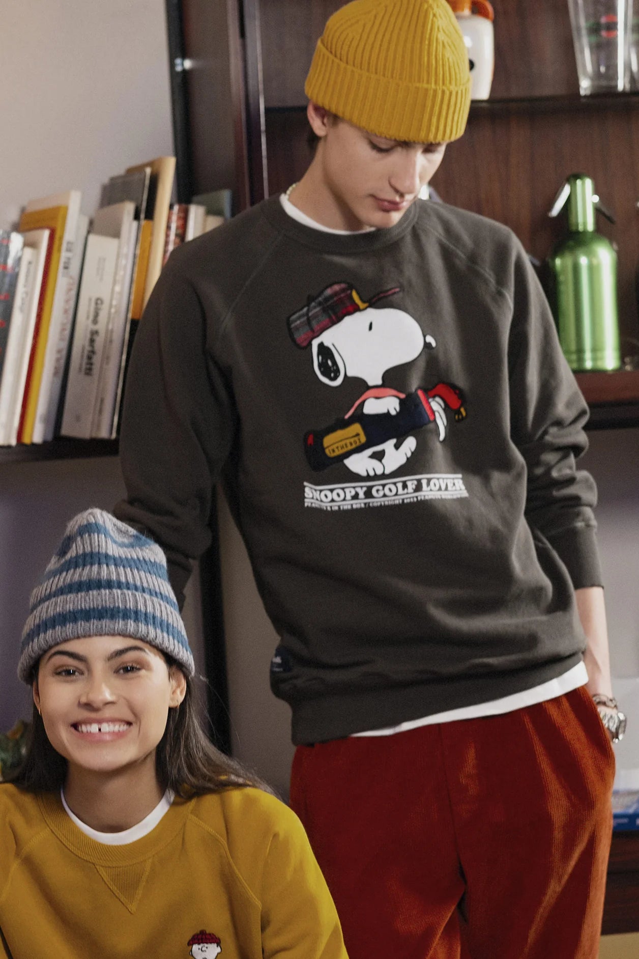 Felpa girocollo con stampa Snoopy sul petto. Fondo e polsi a costine.