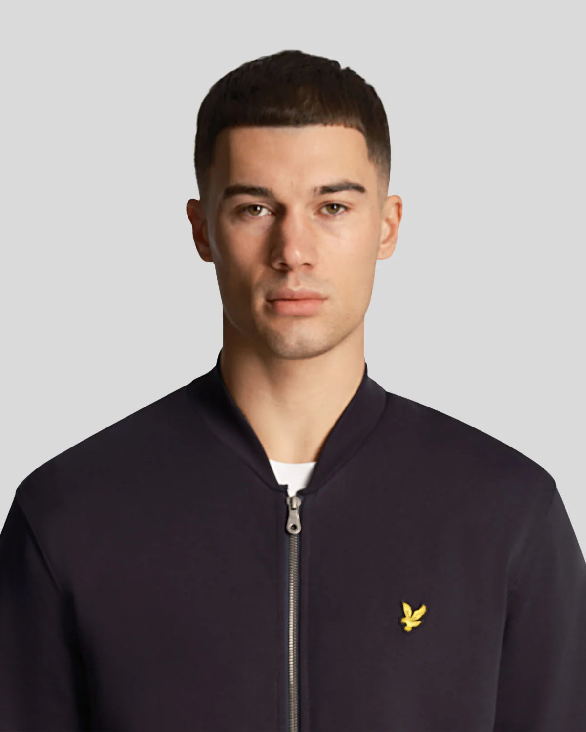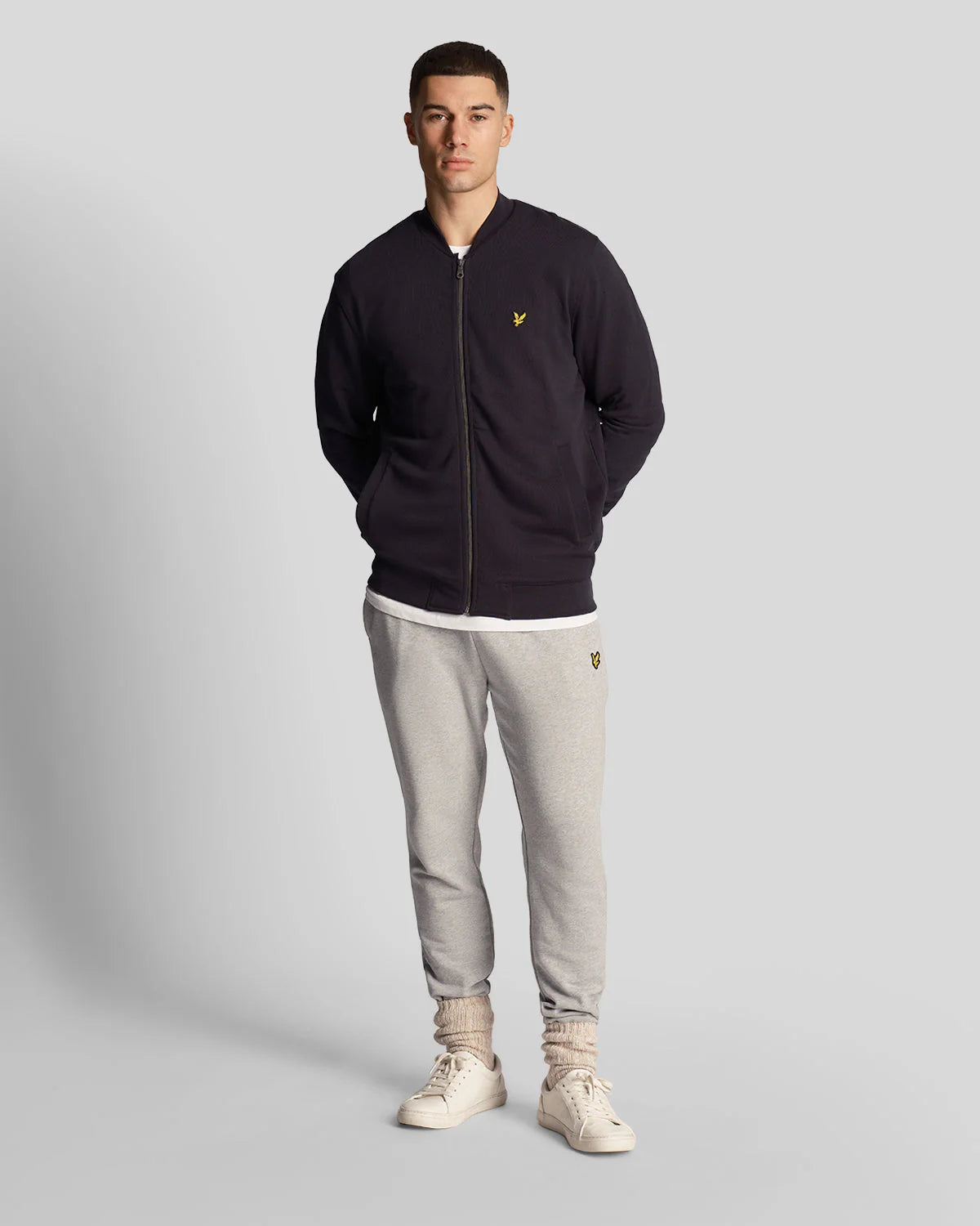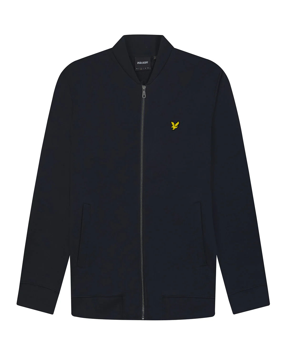 Felpa full zip con collo, fondo e polsi a coste, tasche inserite sul davanti e logo applicato sul petto.