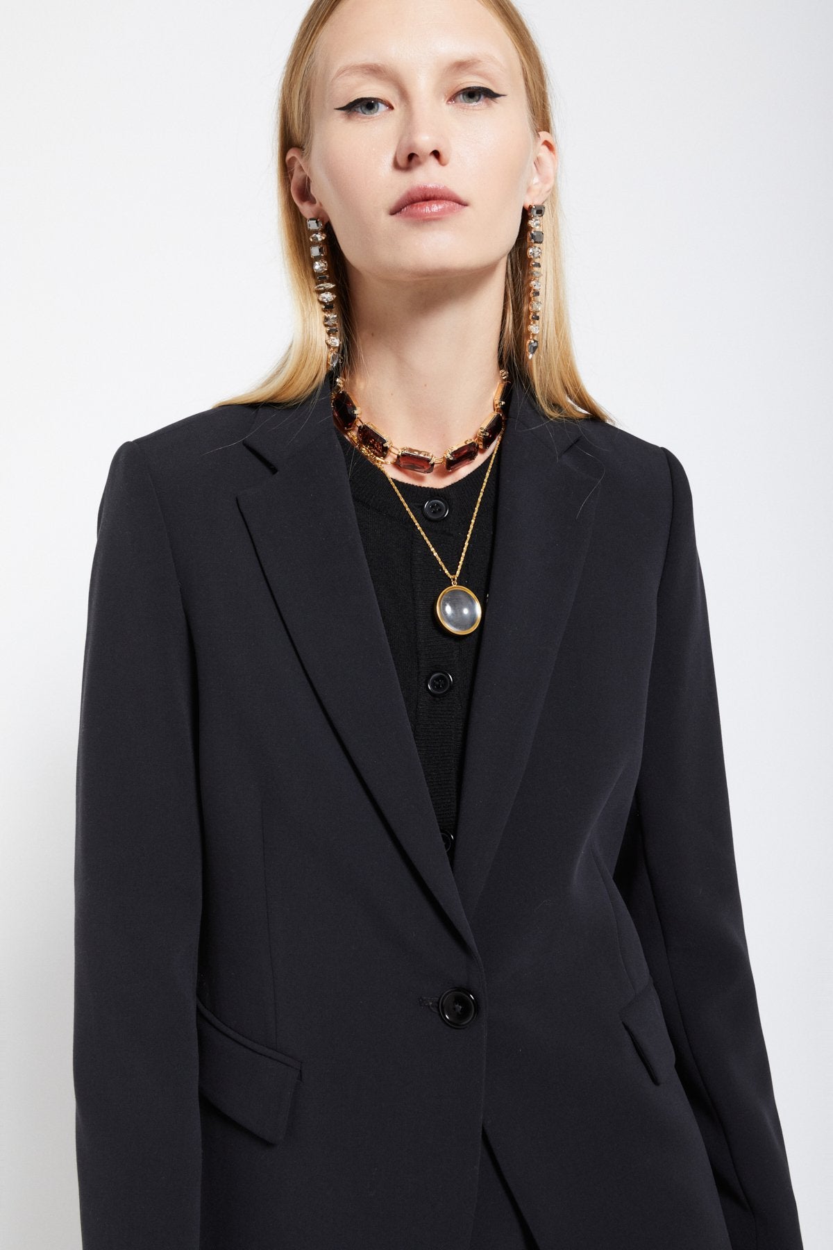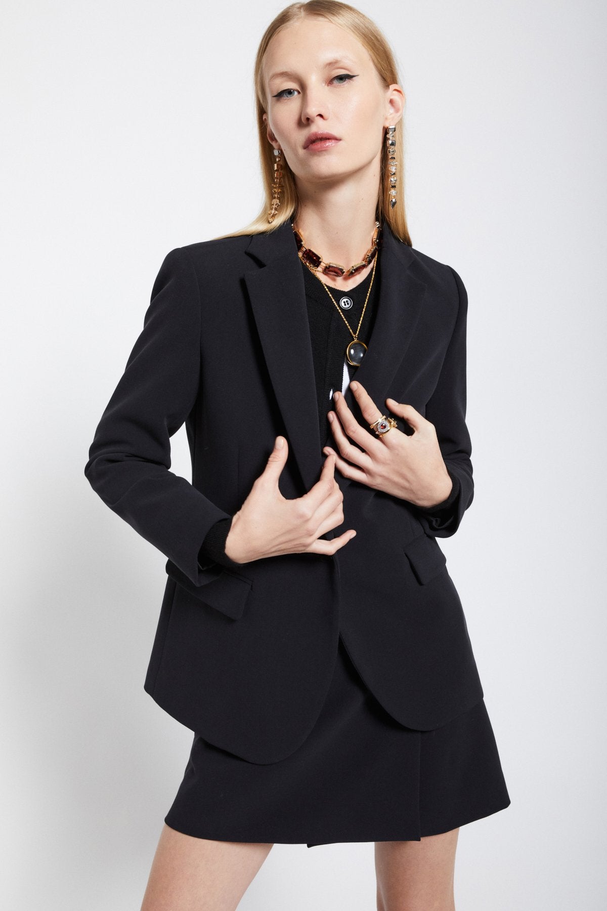 La giacca con collo rever e chiusura a un bottone è l'aggiunta perfetta al tuo guardaroba. Preparati per qualsiasi occasione con questo capo versatile e alla moda. Realizzata con materiali di alta qualità, questa giacca unisce stile e comfort per un look impeccabile.
