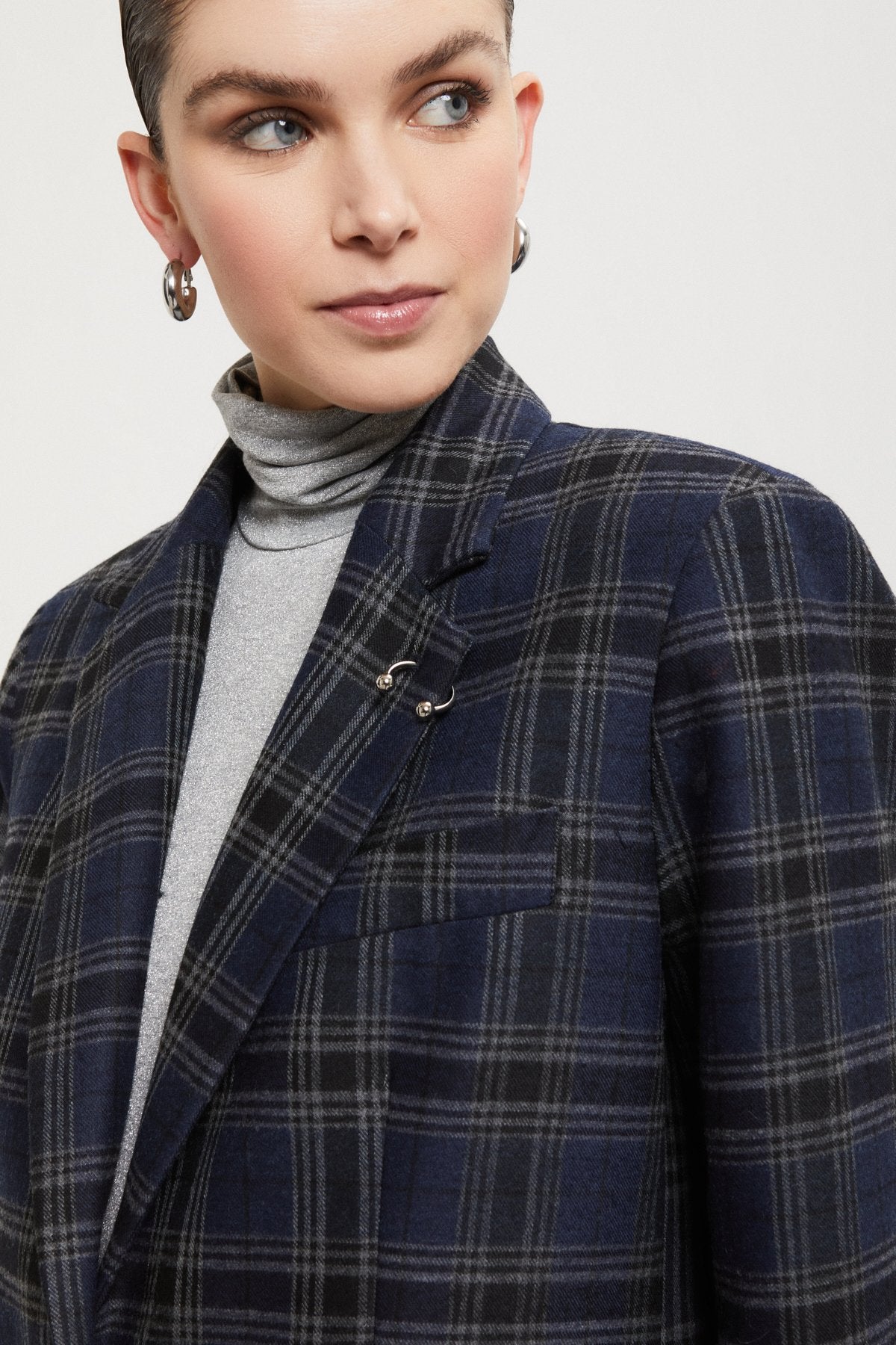 Giacca patchwork check in misto lana, caratterizzata da un unico bottone e vestibilità over. Perfetta per chi cerca uno stile moderno e confortevole, unisce eleganza e comodità grazie al suo tessuto morbido e alla silhouette ampia. Ideale per dare un tocco di personalità a qualsiasi look.