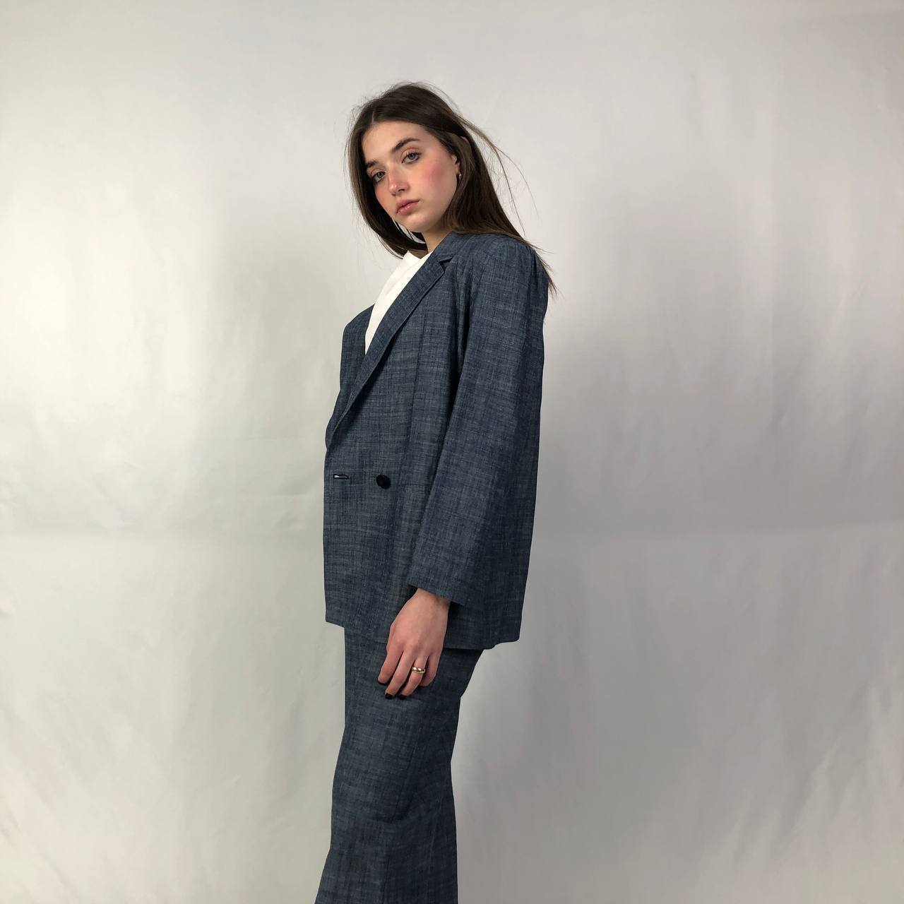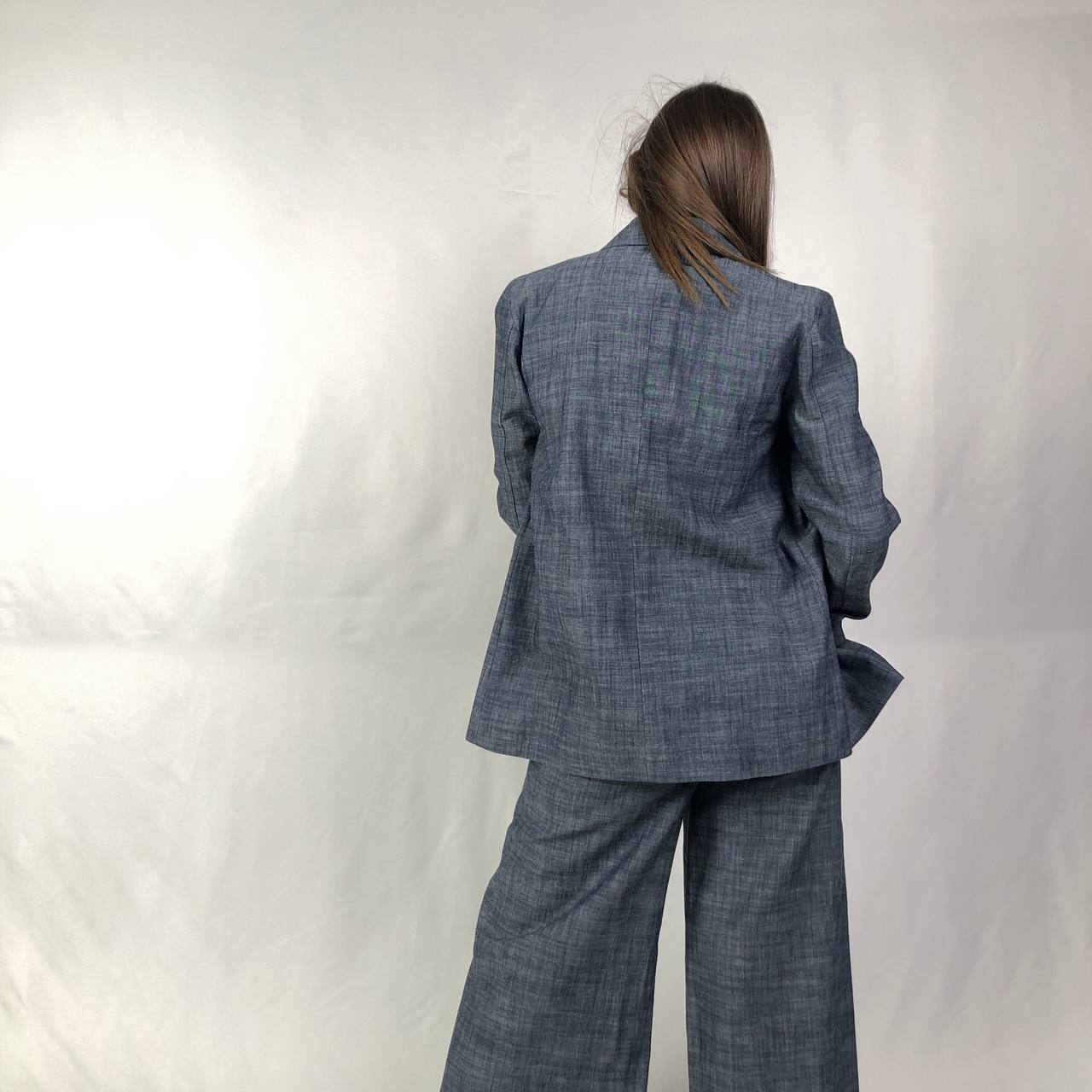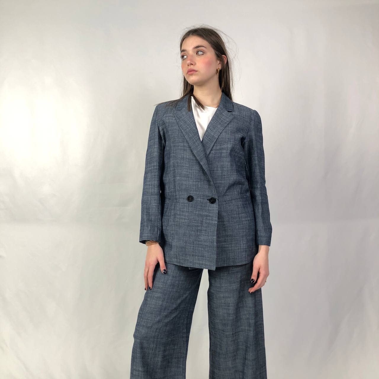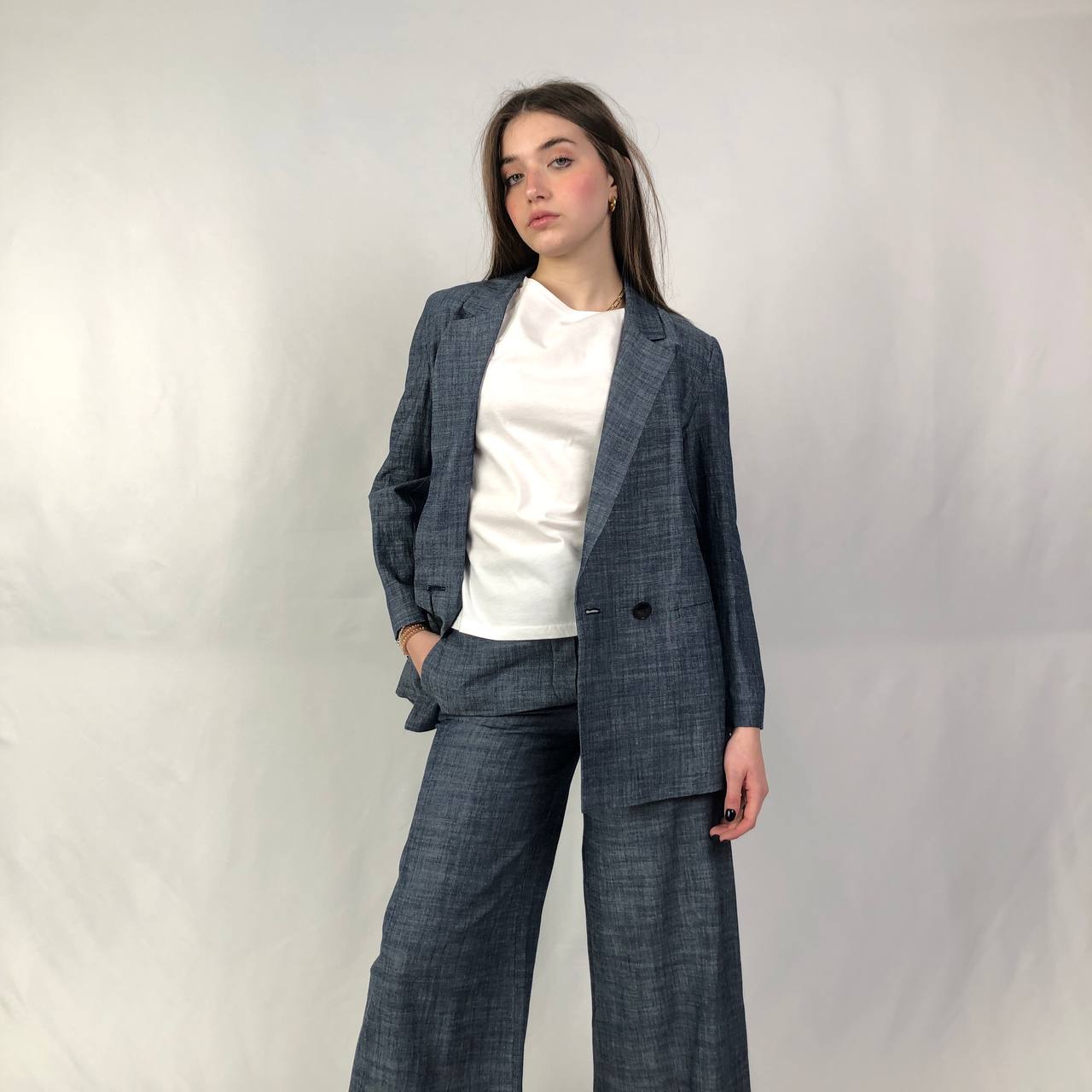 Cod.CANDORE Giacca in misto lino doppiopetto, linea dritta con tasche a filetto. Da abbinare al pantalone Iolanda nello stesso tessuto.