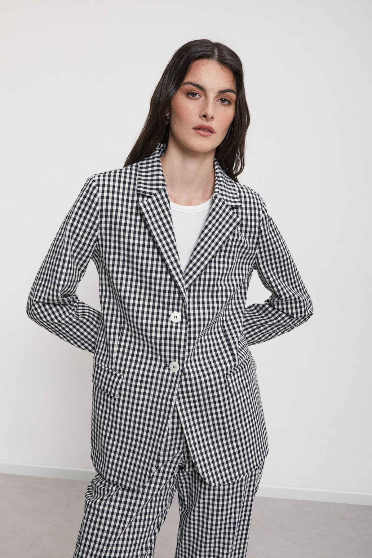 Questa giacca quadretti è realizzata in 100% cotone e presenta un grazioso motivo a stampa vichy. I due bottoni aggiungono un tocco di eleganza, rendendola perfetta per ogni occasione. Comoda e leggera, è ideale per essere indossata durante la primavera e l'estate. Aggiungi una nota di stile al tuo guardaroba con questa giacca unica!