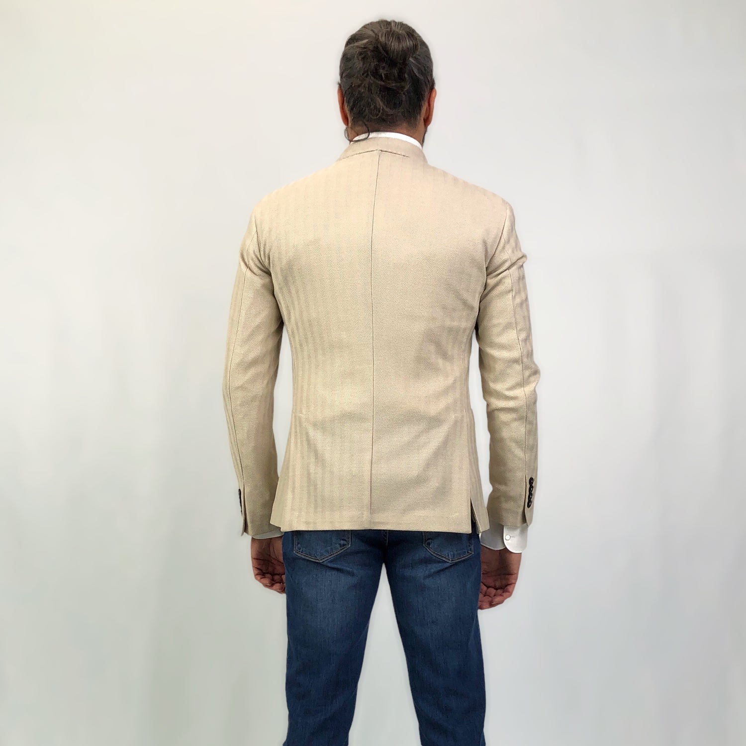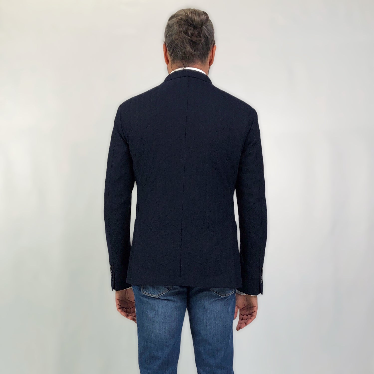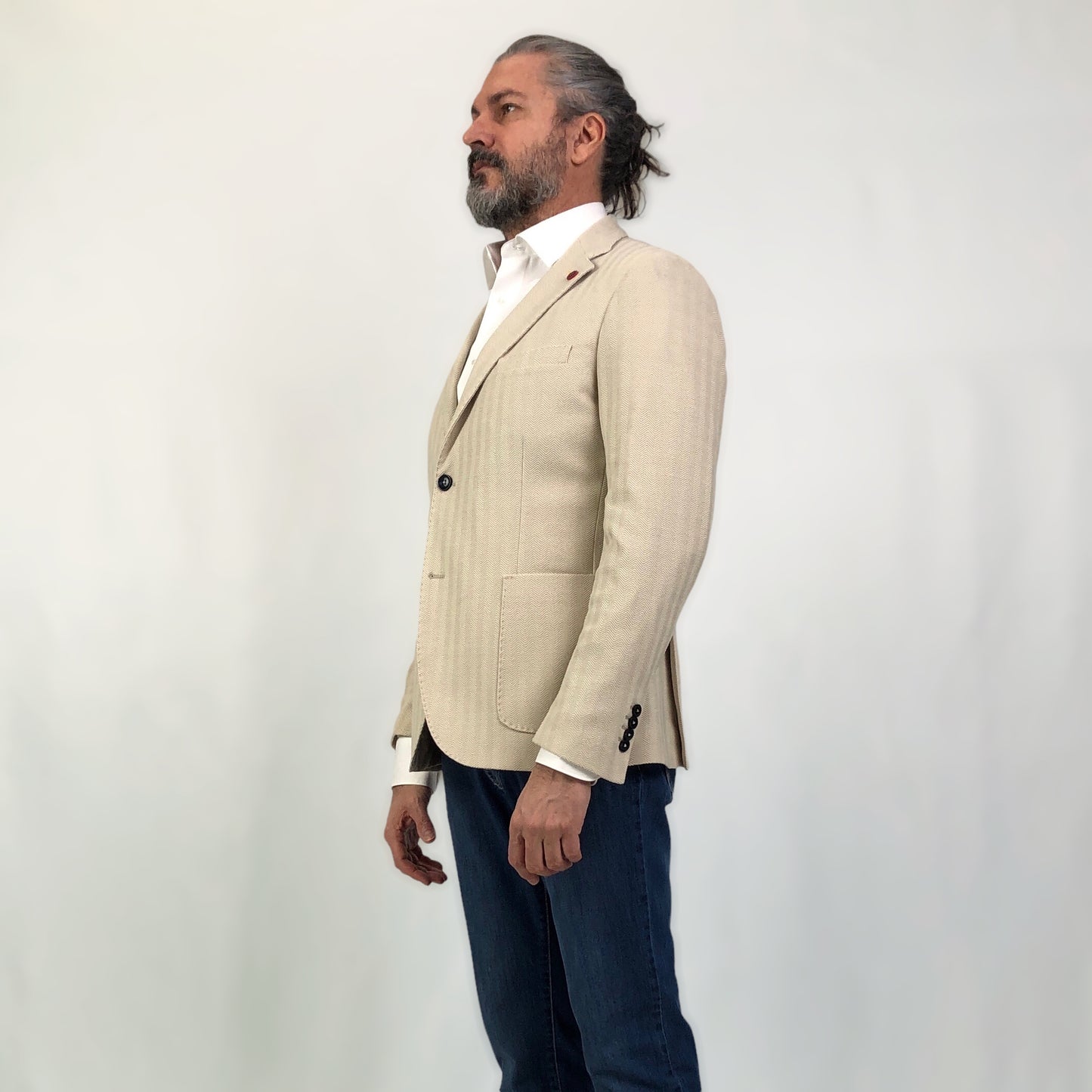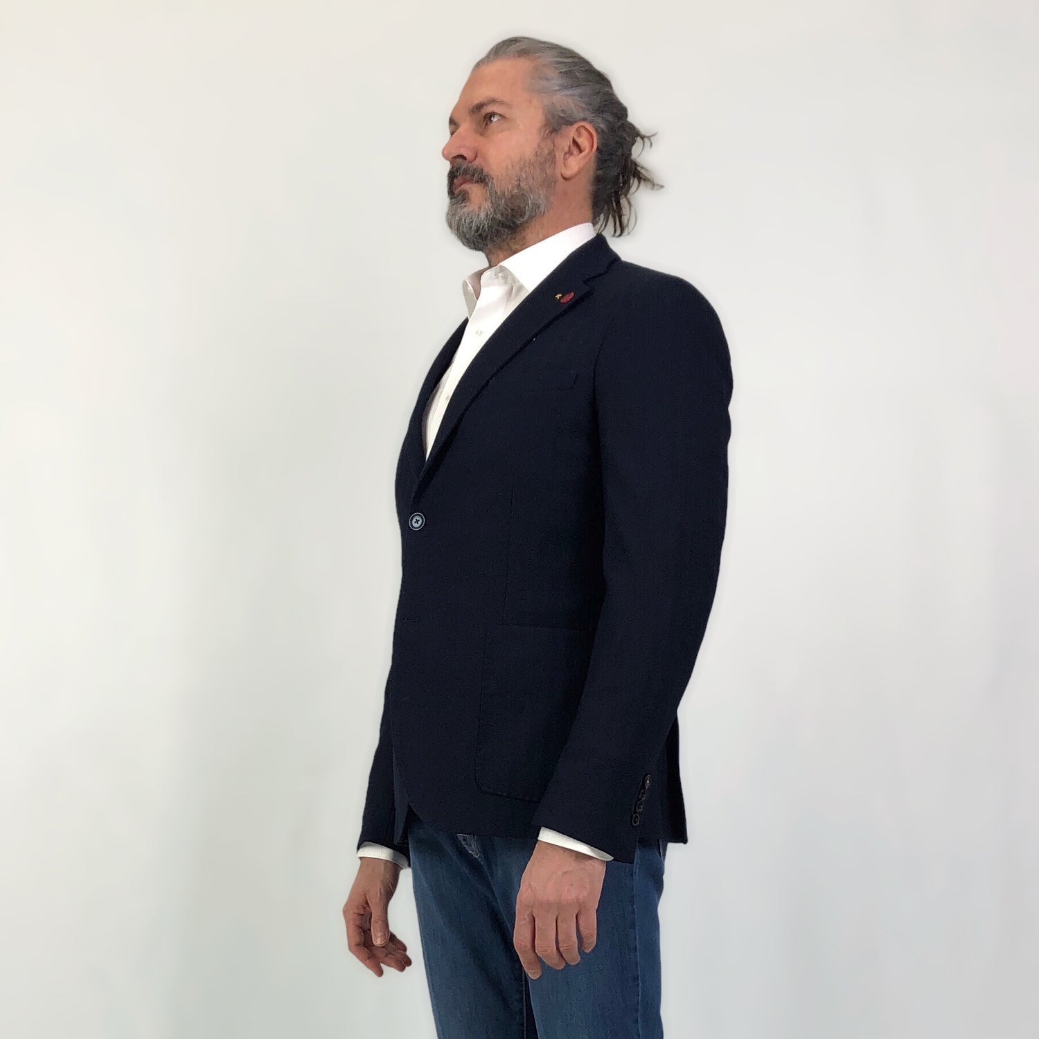 Cod.EGIC-PP72 Giacca in tessuto spigato in tinta a monopetto e tasche a toppa