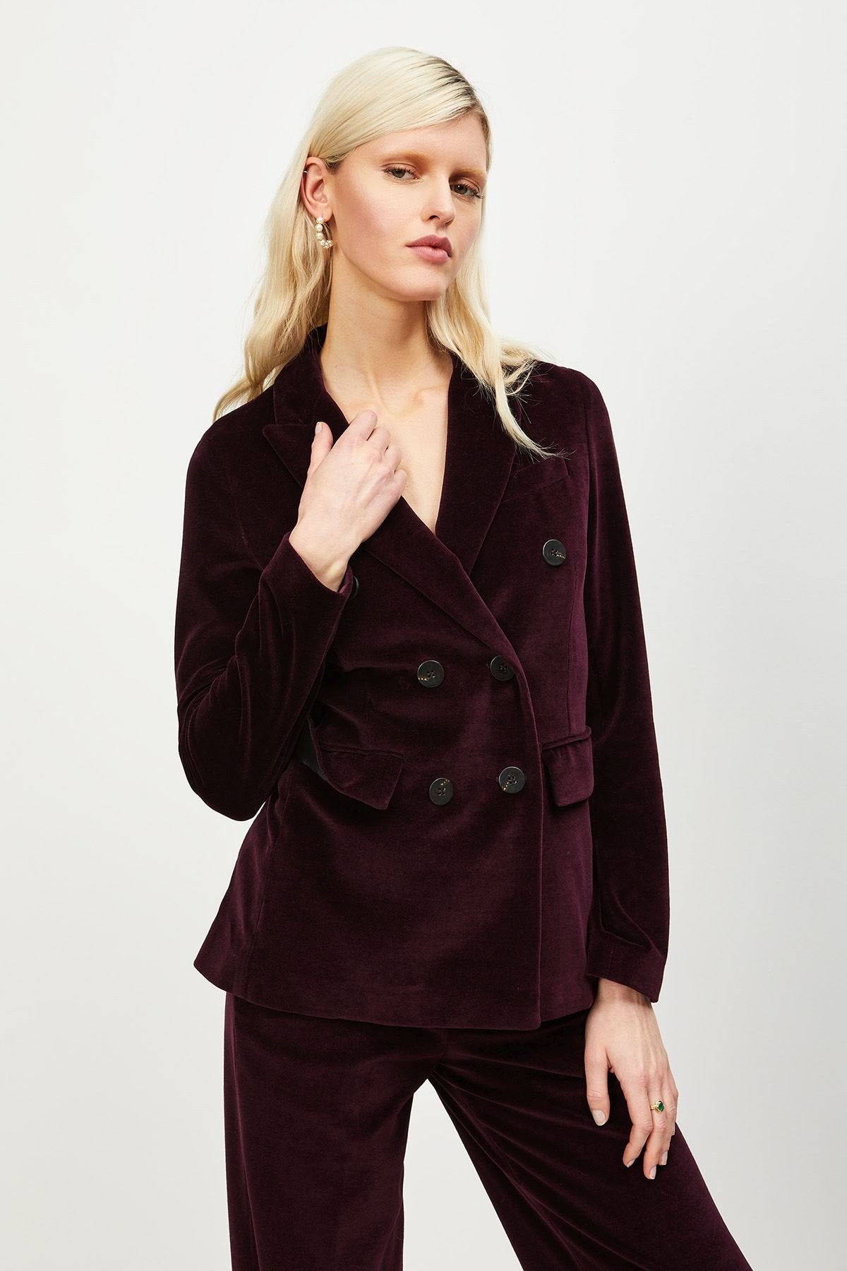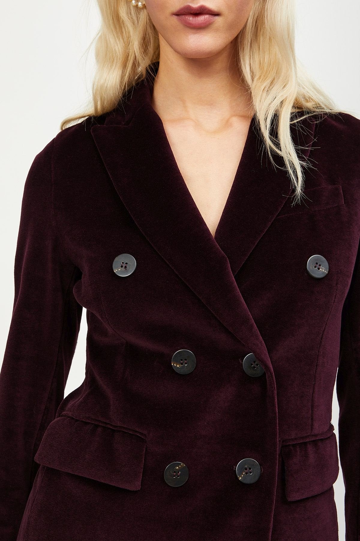 Cod.DG5739 Giacca in velluto a doppiopetto con collo a rever e tasche con patta.