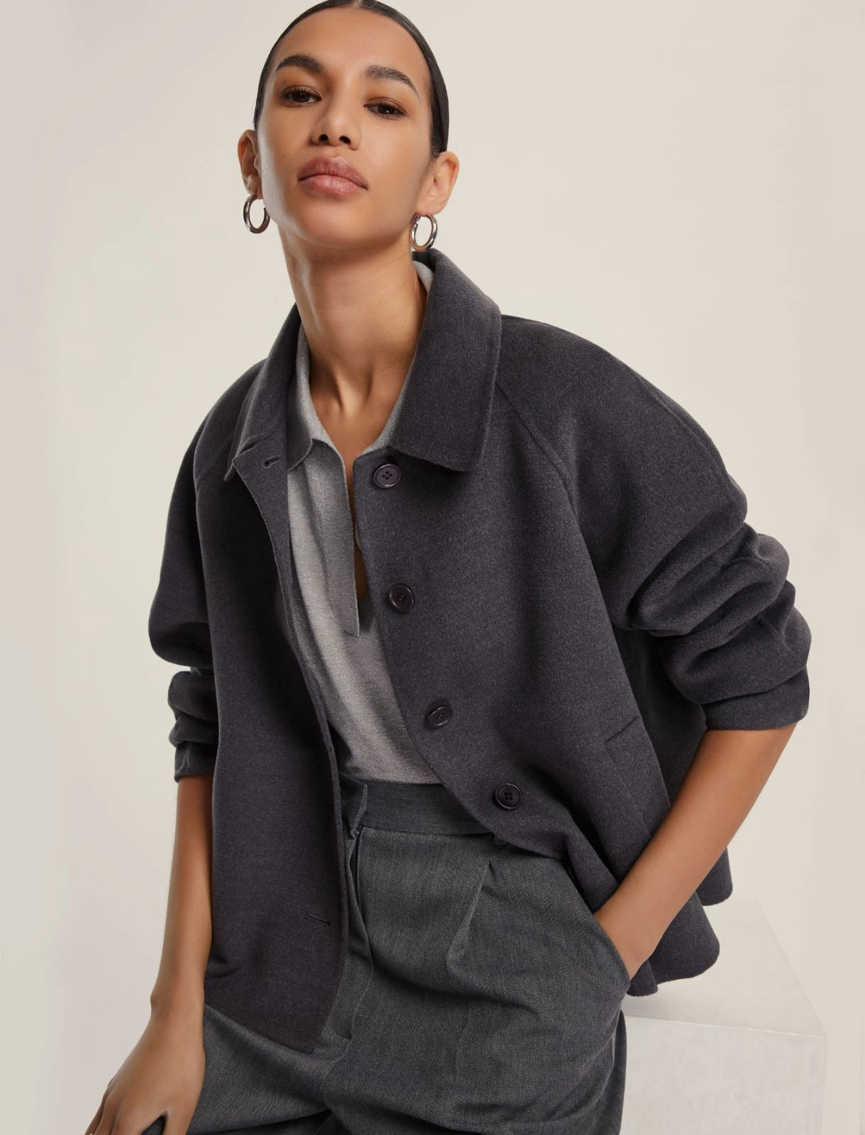 Emme Marella interpreta l'eleganza delle stagioni di transizione attraverso tessuti di qualità e design essenziali. Questo giaccone rappresenta l'evoluzione dell'outerwear femminile, dove praticità e raffinatezza si incontrano armoniosamente.