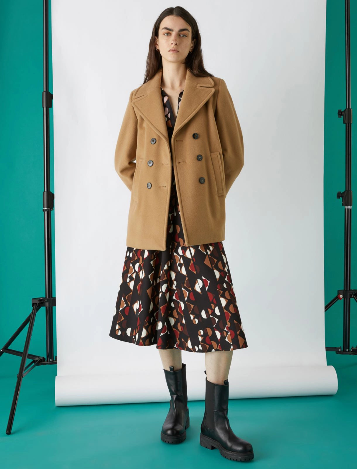 Cod.LUCERNA Giaccone dalla linea dritta in misto lana con chiusura a doppiopetto e collo a rever. Sul davanti tasche a filetto, interno foderato.