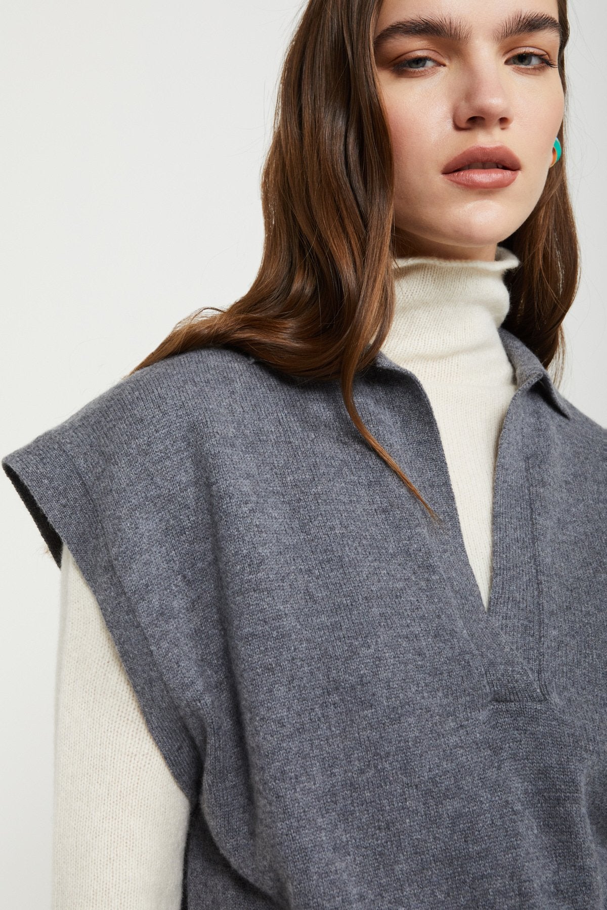 Gilet cropped in misto cashmere con scollo a V.
