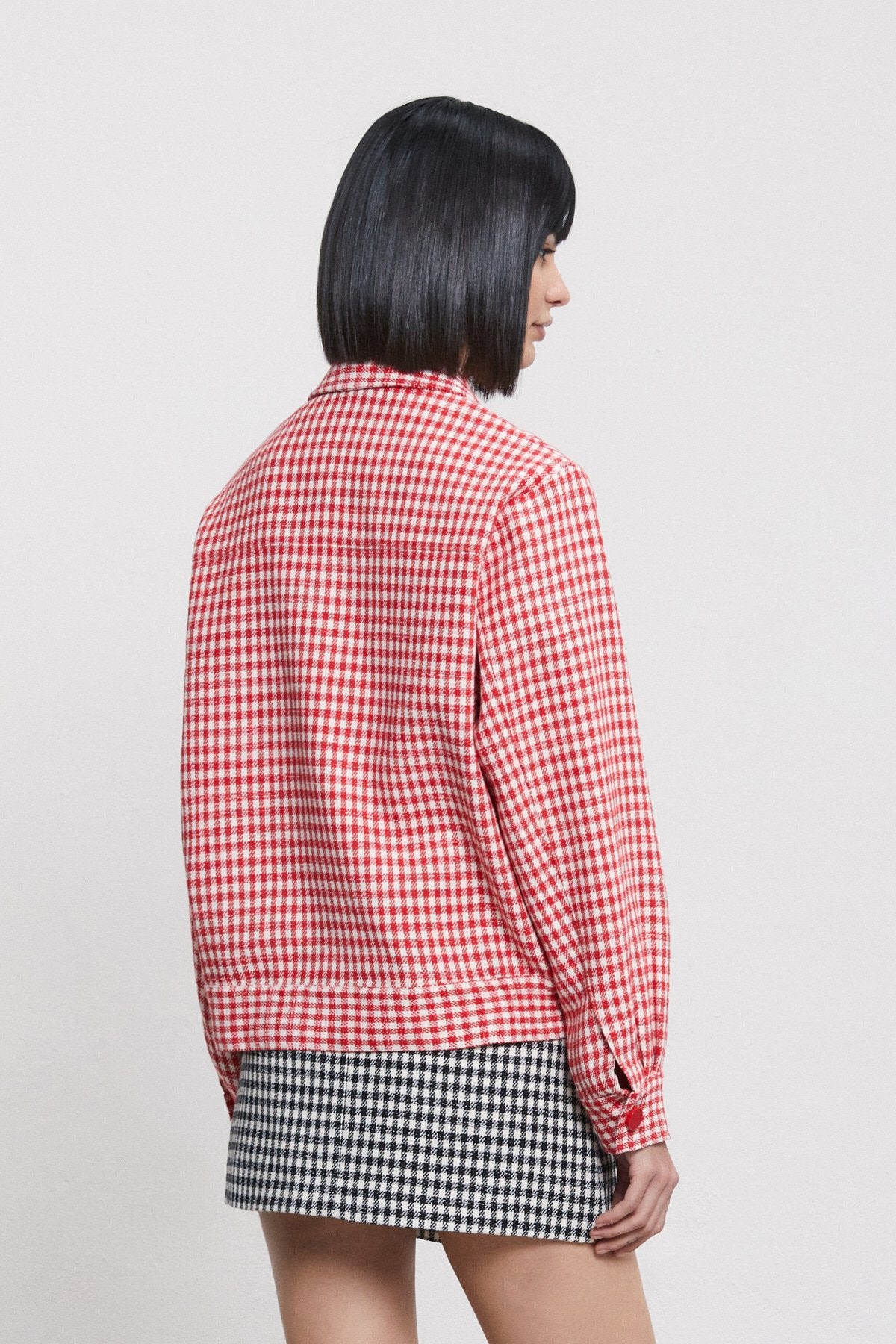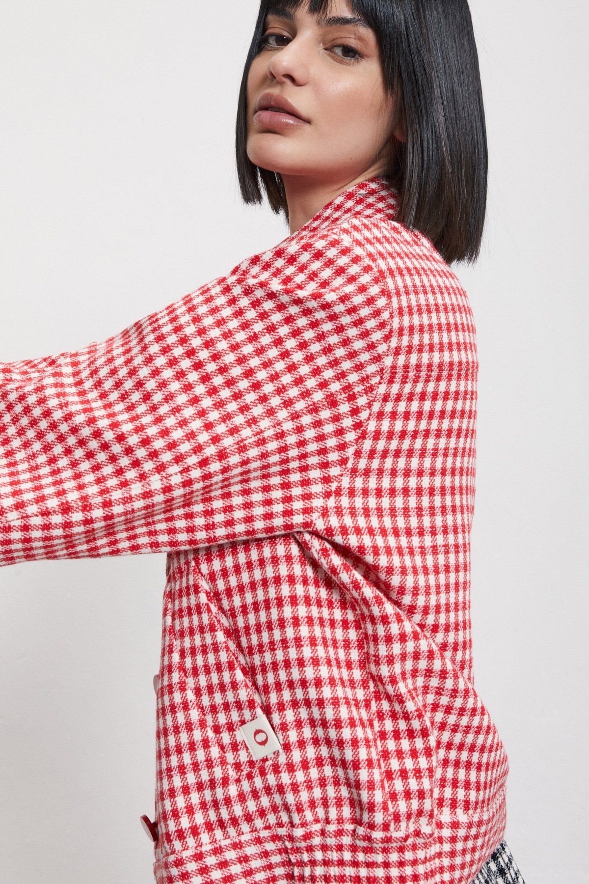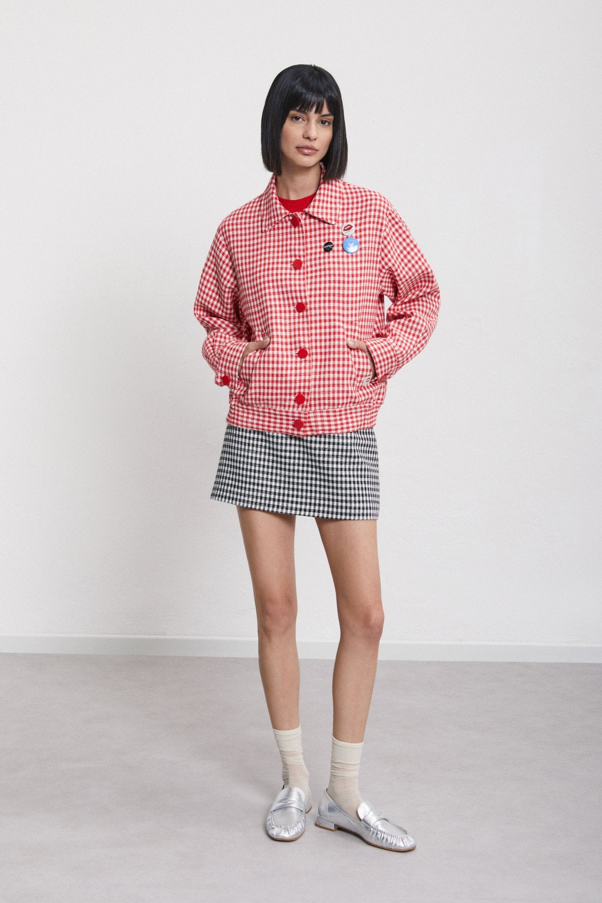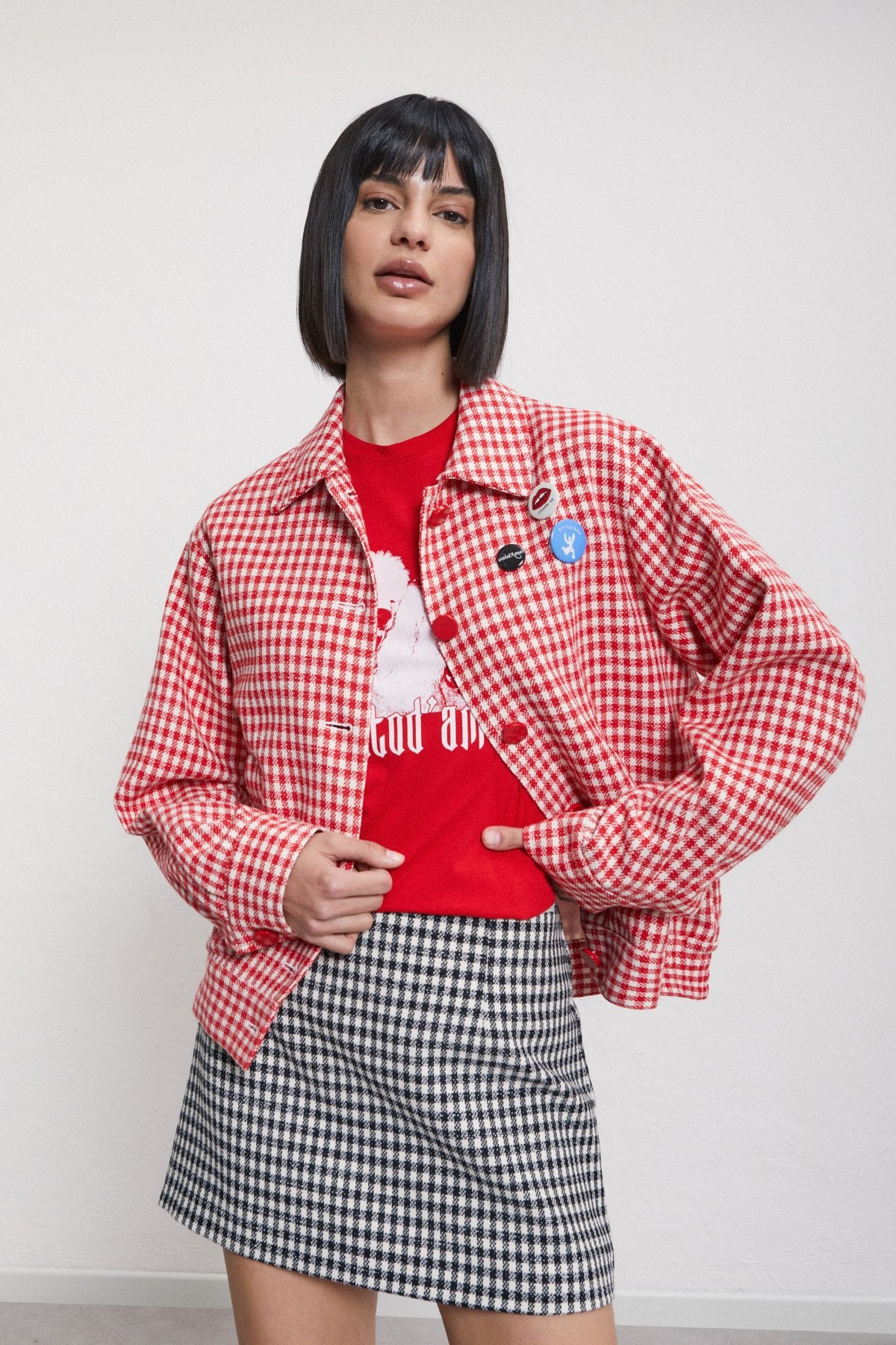 Rinnova il tuo guardaroba con lo stile unico di questo giubbotto a quadretti. La stampa vichy, i bottoni e le spille con logo lo rendono un capo elegante e originale. Aggiungi un tocco di classe ai tuoi outfit con questo giubbotto di qualità.