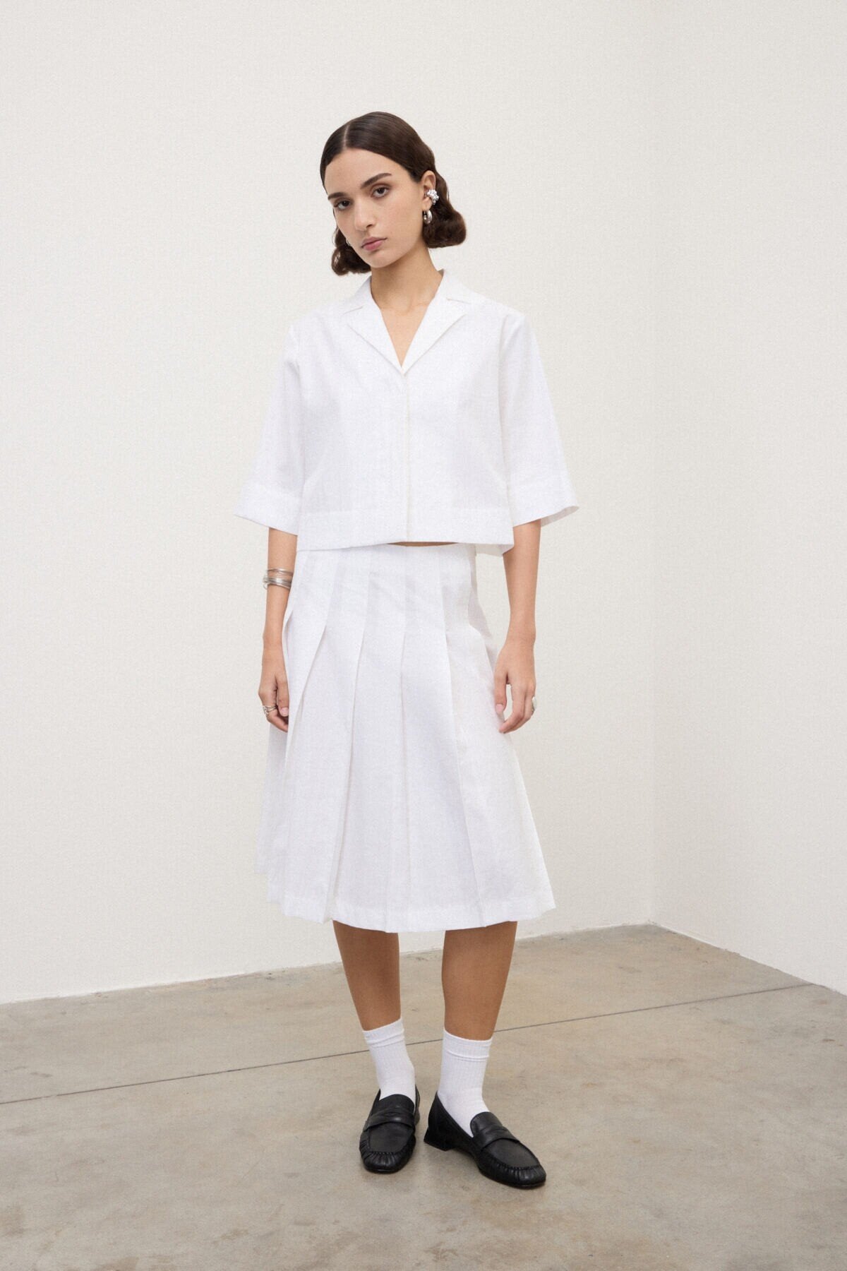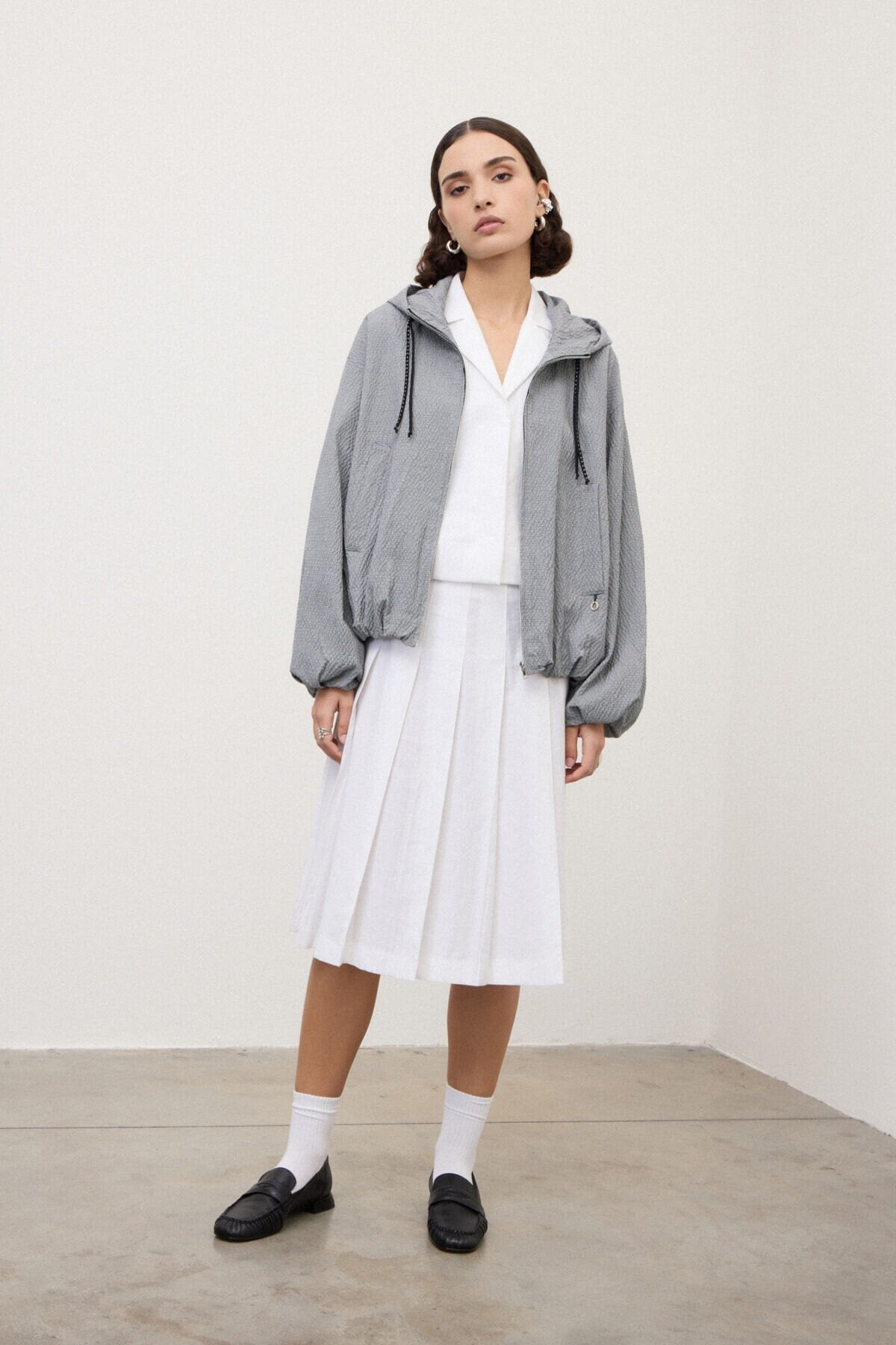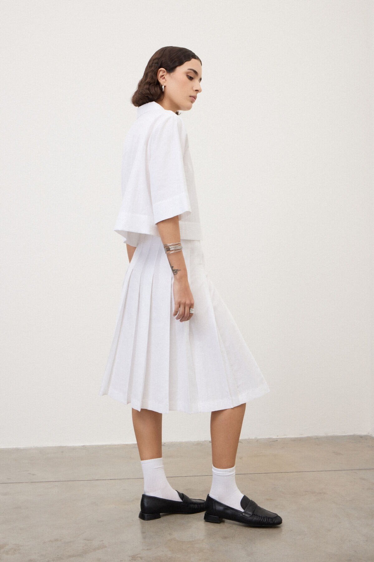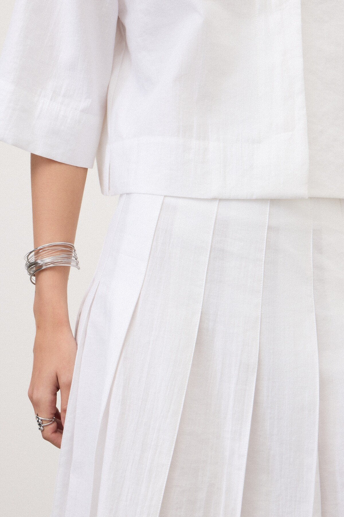 - Pieghe che creano movimento: La costruzione plissettata dona dinamismo e leggerezza al capo, valorizzando ogni movimento con eleganza naturale