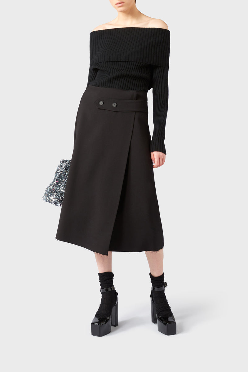 Cod.L2WM61 Gonna lunghezza midi in lana e viscosa stretch, a vita alta, svasata al fondo e lunghezza sotto al ginocchio