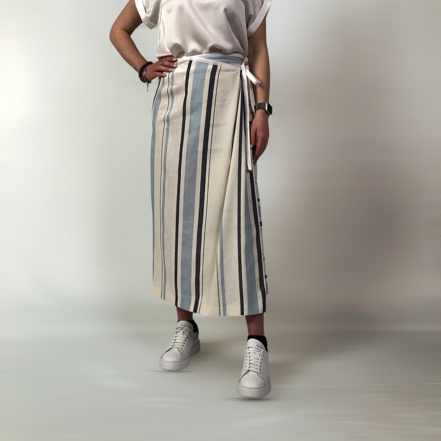 Cod.CAMMINO Gonna lunghezza alla caviglia in tessuto a righe diverse con chiusura a portafoglio