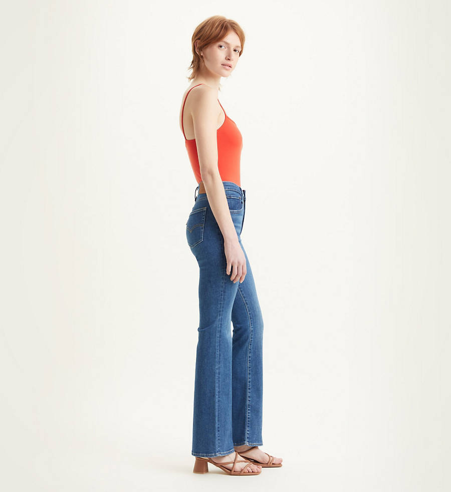 Cod.A3410-0001 Jeans aderente dalla vita al ginocchio e svasato al fondo. Chiuso con zip e bottone in vita.