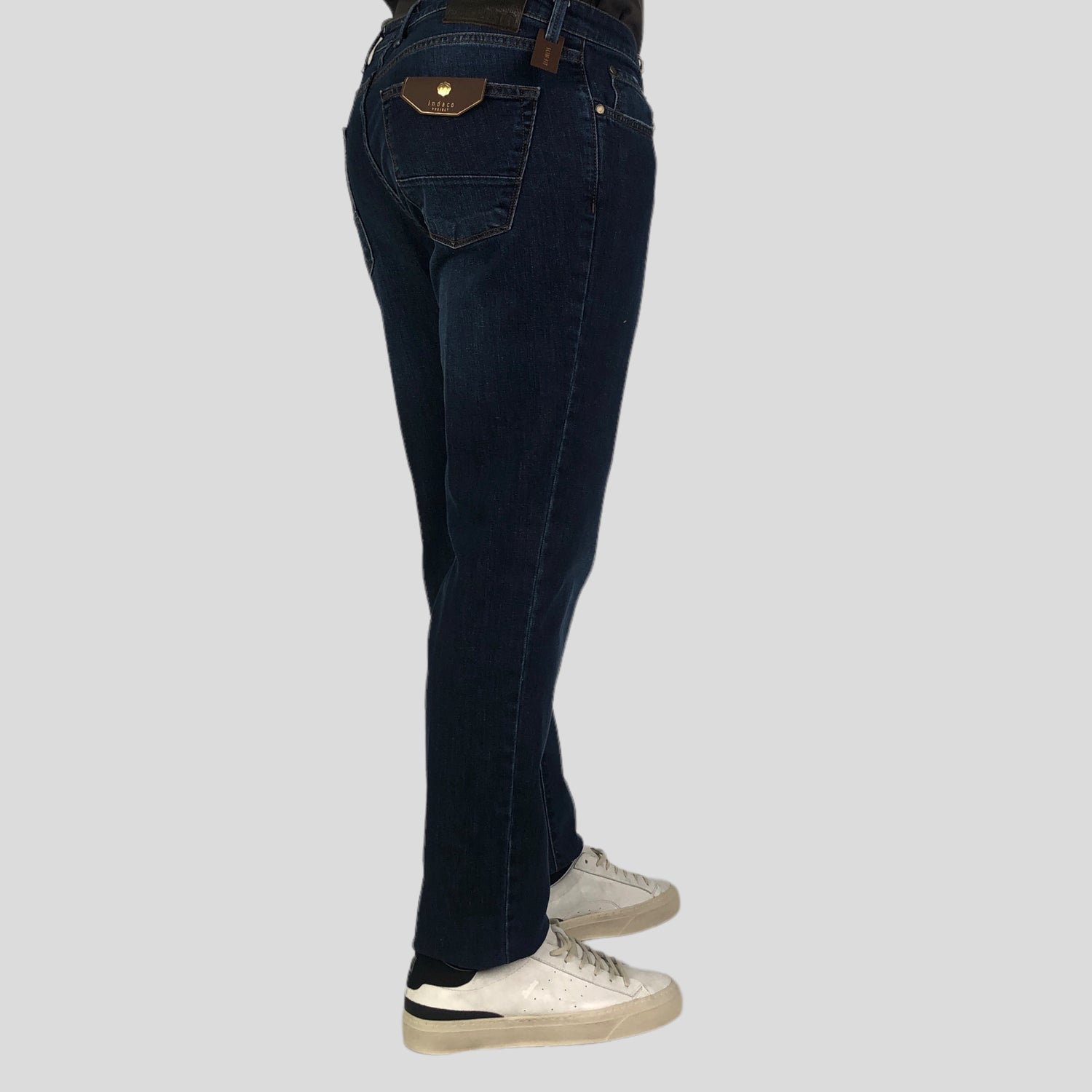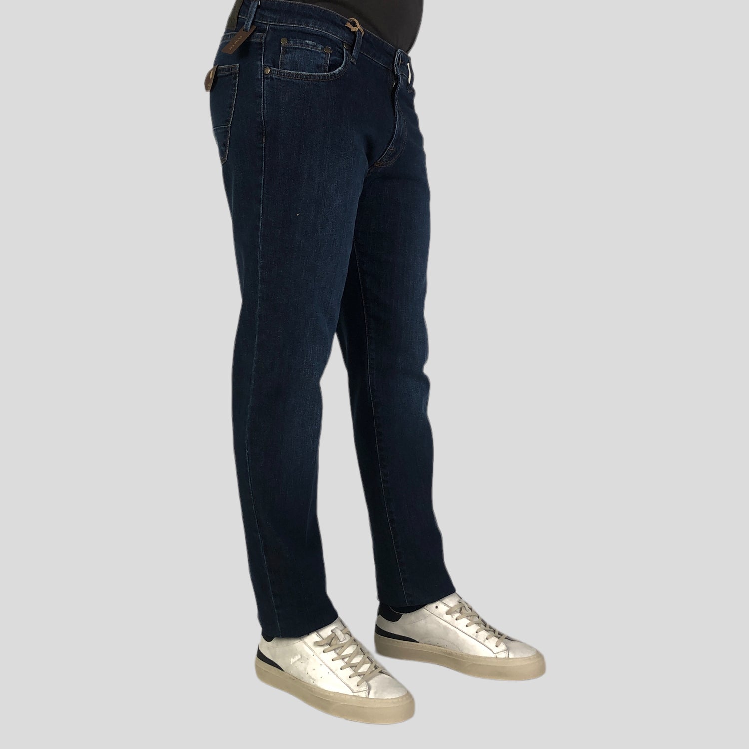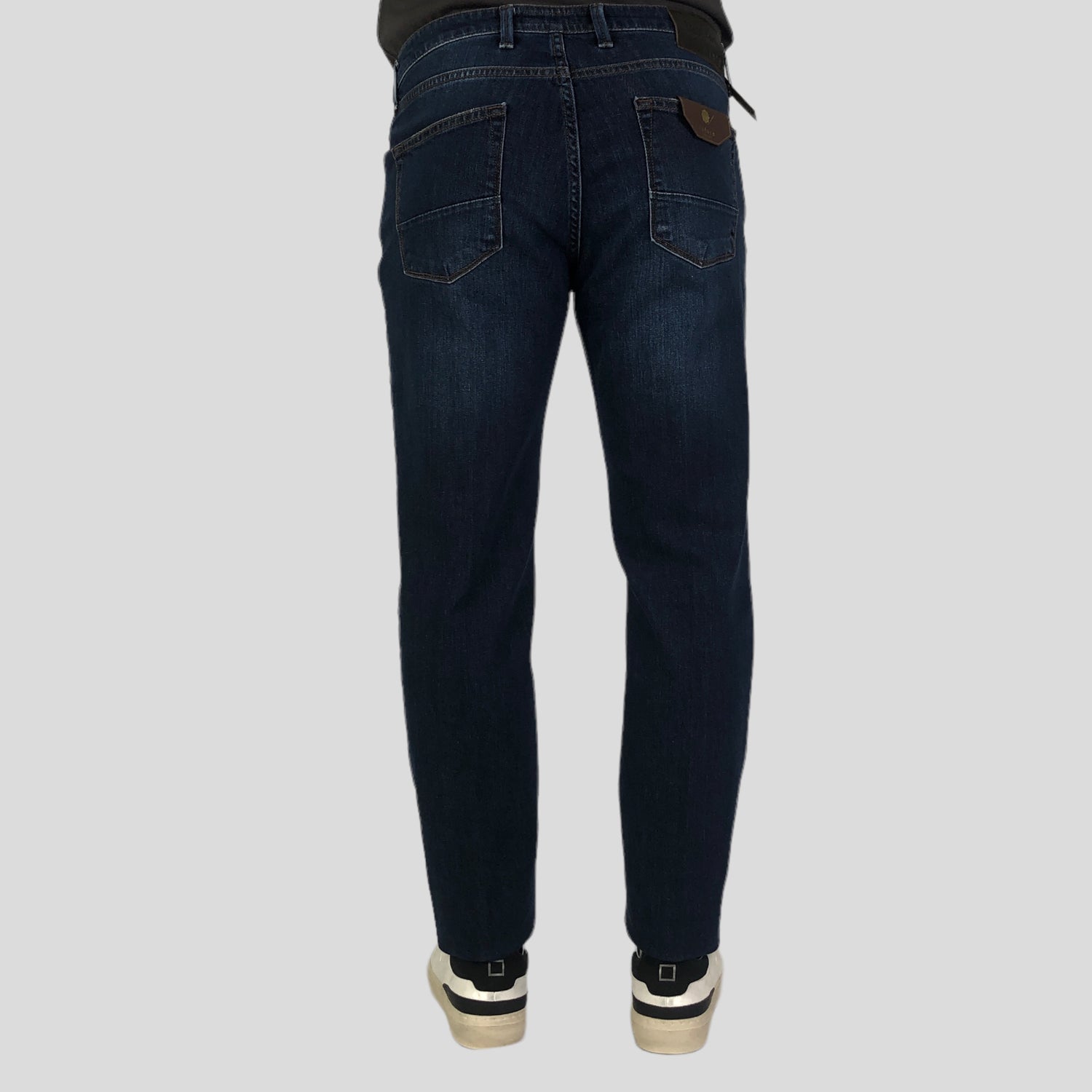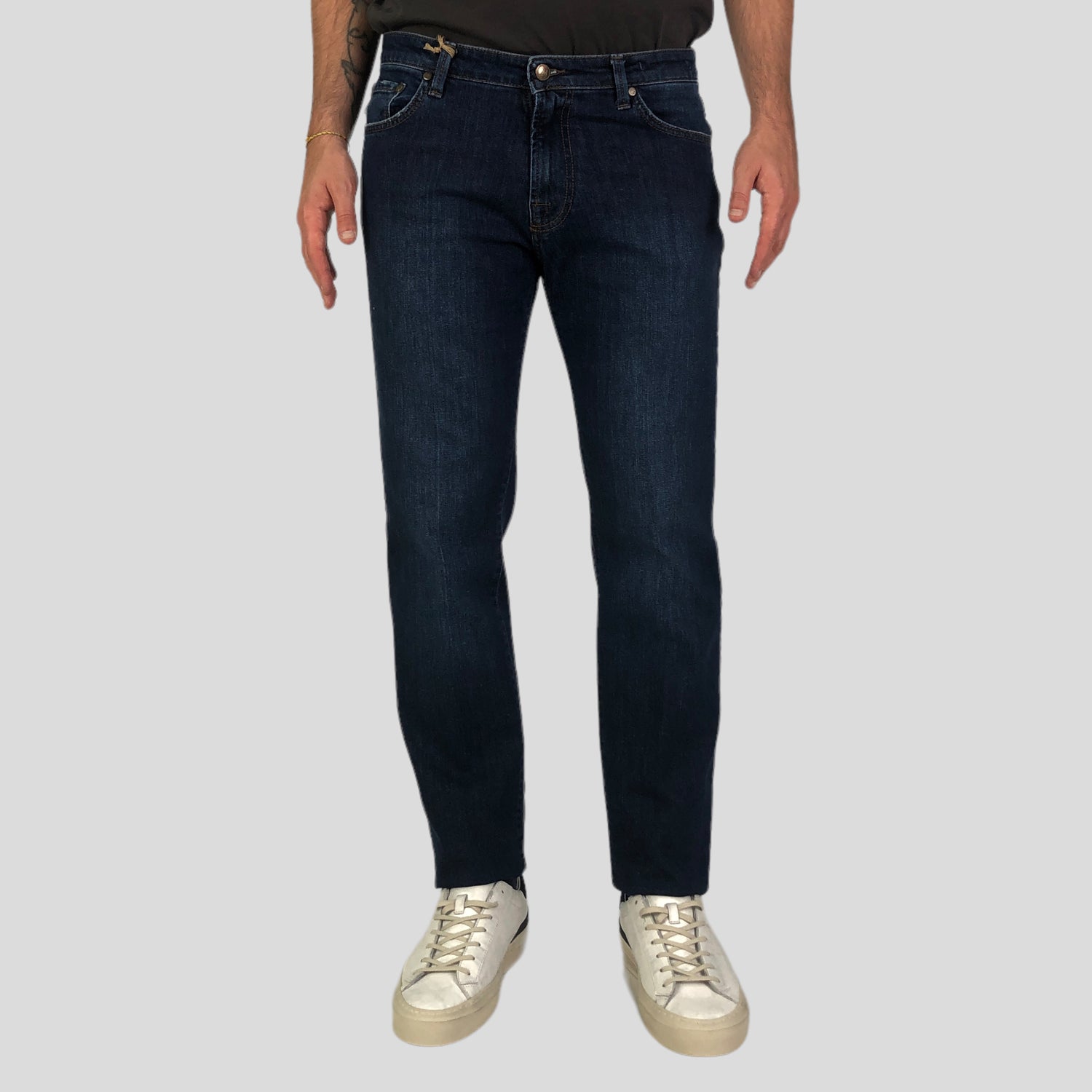 Cod.T988-222016 Jeans in denim stretch nel classico modello cinque tasche chiuso con zip e bottone, passanti in vita. Made in Italy.
