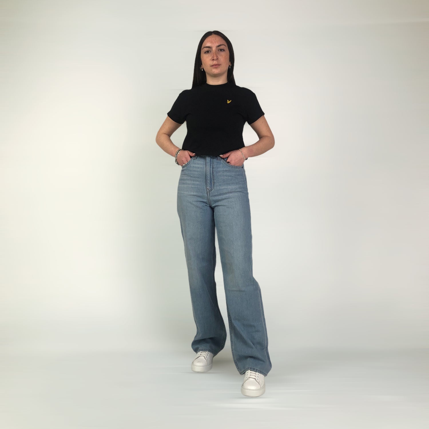 Cod.26872-0017 Jeans a vita alta e gamba larga per esaltare al massimo la figura. Patta con zip. Capo realizzato in cotone e canapa.