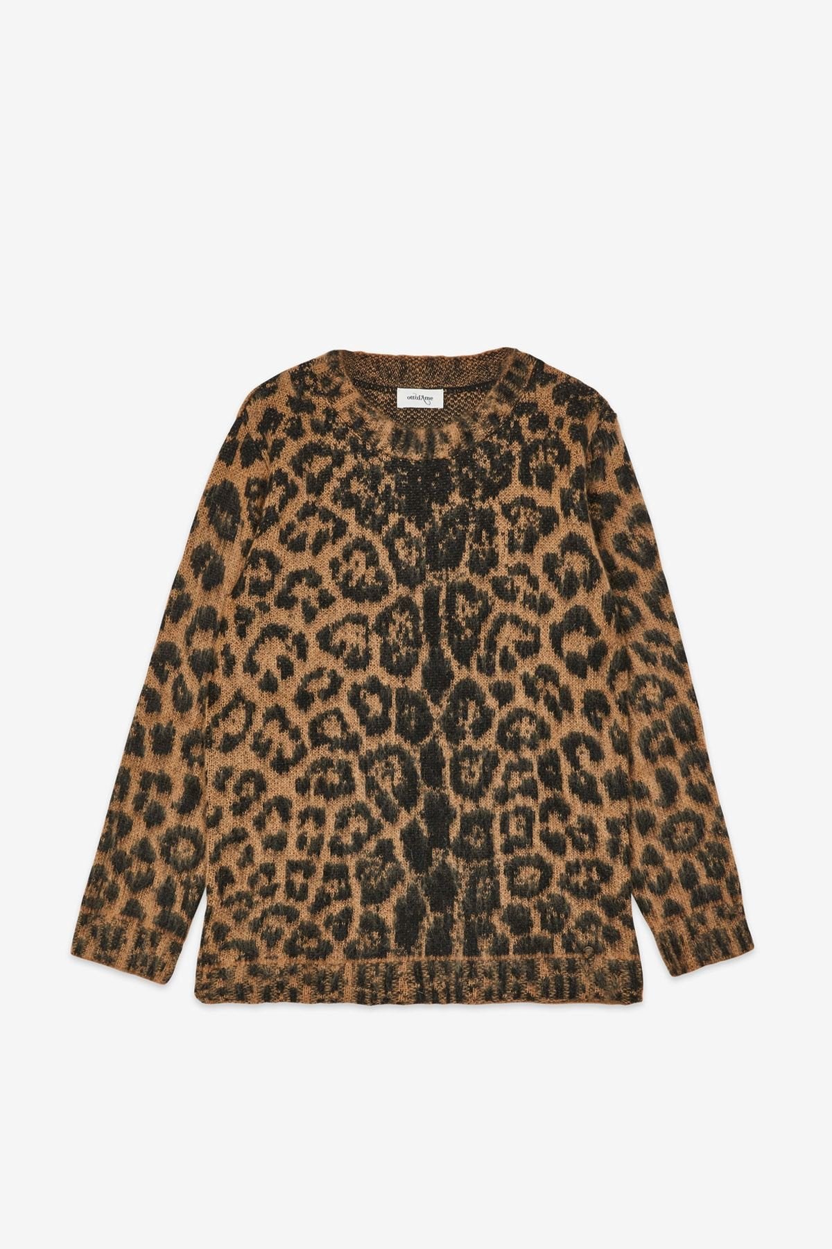 Cod.DK0071 Maglia a girocollo in misto mohair con scollo tondo in fantasia animalier