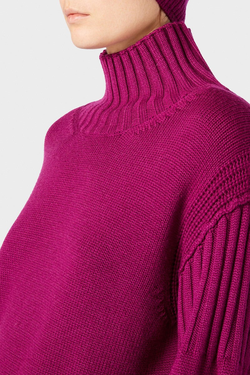 Cod.F2WD04 maglia in 100% lana tinta ad immersione, con collo alto, maniche lunghe a spalla scesa, collo, polsini e fondo bordati a coste, lunghezza ai fianchi