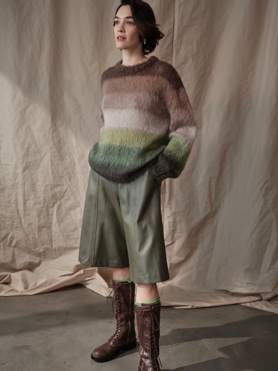 Abbinala a pantaloni culotte e mocassini per un look da ufficio sofisticato, oppure indossala con jeans skinny e ankle boots per un weekend casual chic. Per la sera, valorizzala con gonna a tubino e tacchi, lasciando che le righe sfumate aggiungano dinamismo al tuo outfit.