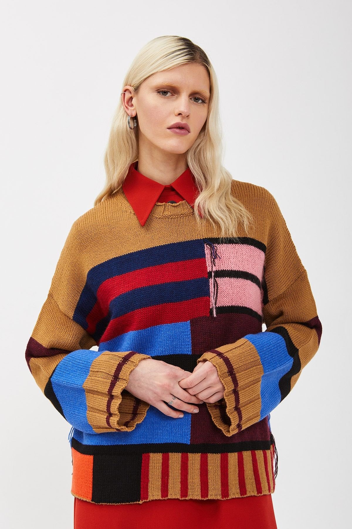 Cod.DK0055 Maglia a girocollo con inserti in lana