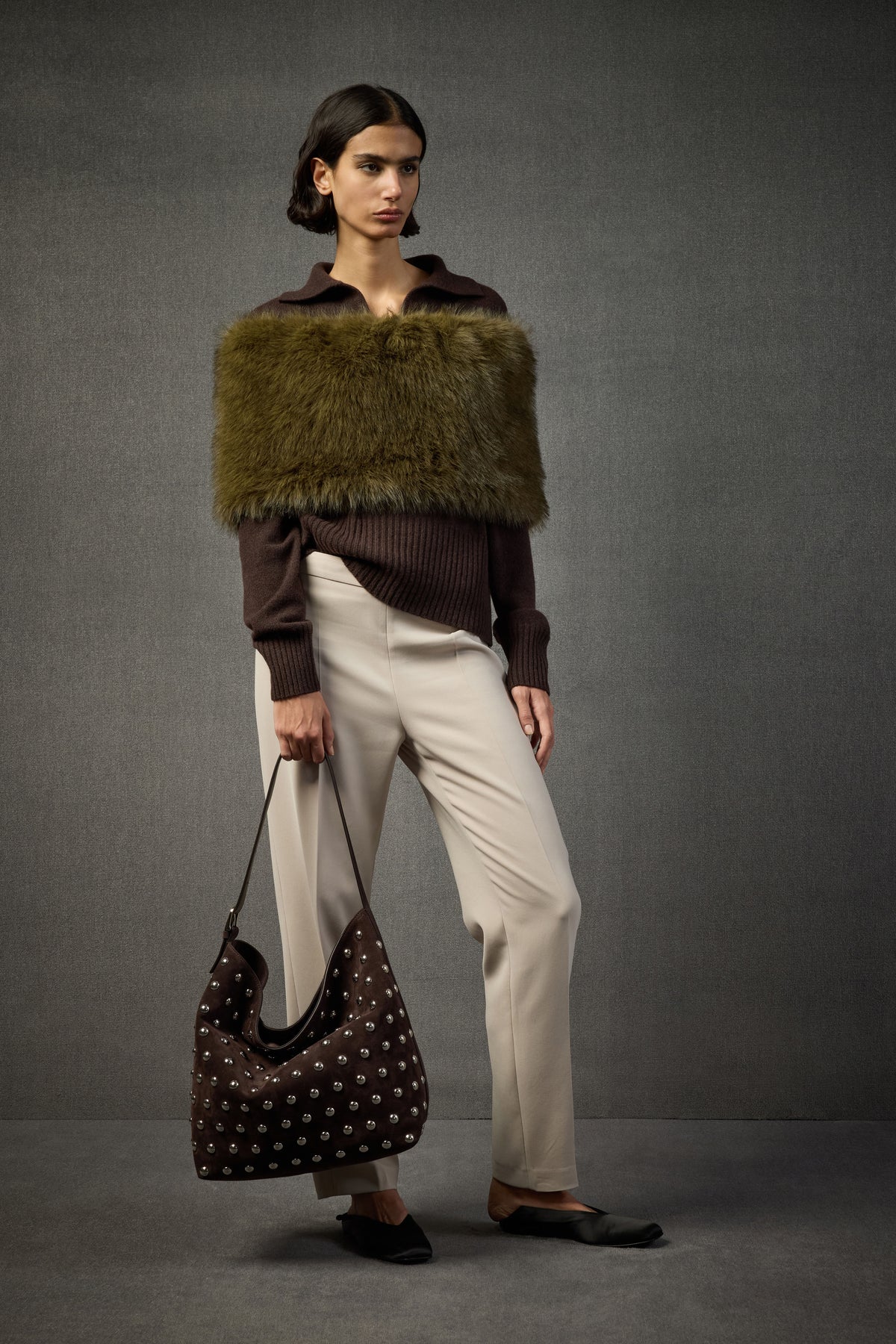 Maglia Lien è un maglione a maniche lunghe marrone scuro realizzato in un pregiato mix di 60% cashmere, 25% seta e 15% lana. Il collo aperto con scollo a V integrato e senza bottoni, in stile polo, aggiunge un tocco di eleganza discreta. Rifinito con fondo e polsini alti ed elasticizzati, garantisce comfort e vestibilità ottimale. Un capo Made in Italy che unisce qualità, raffinatezza e stile senza tempo.