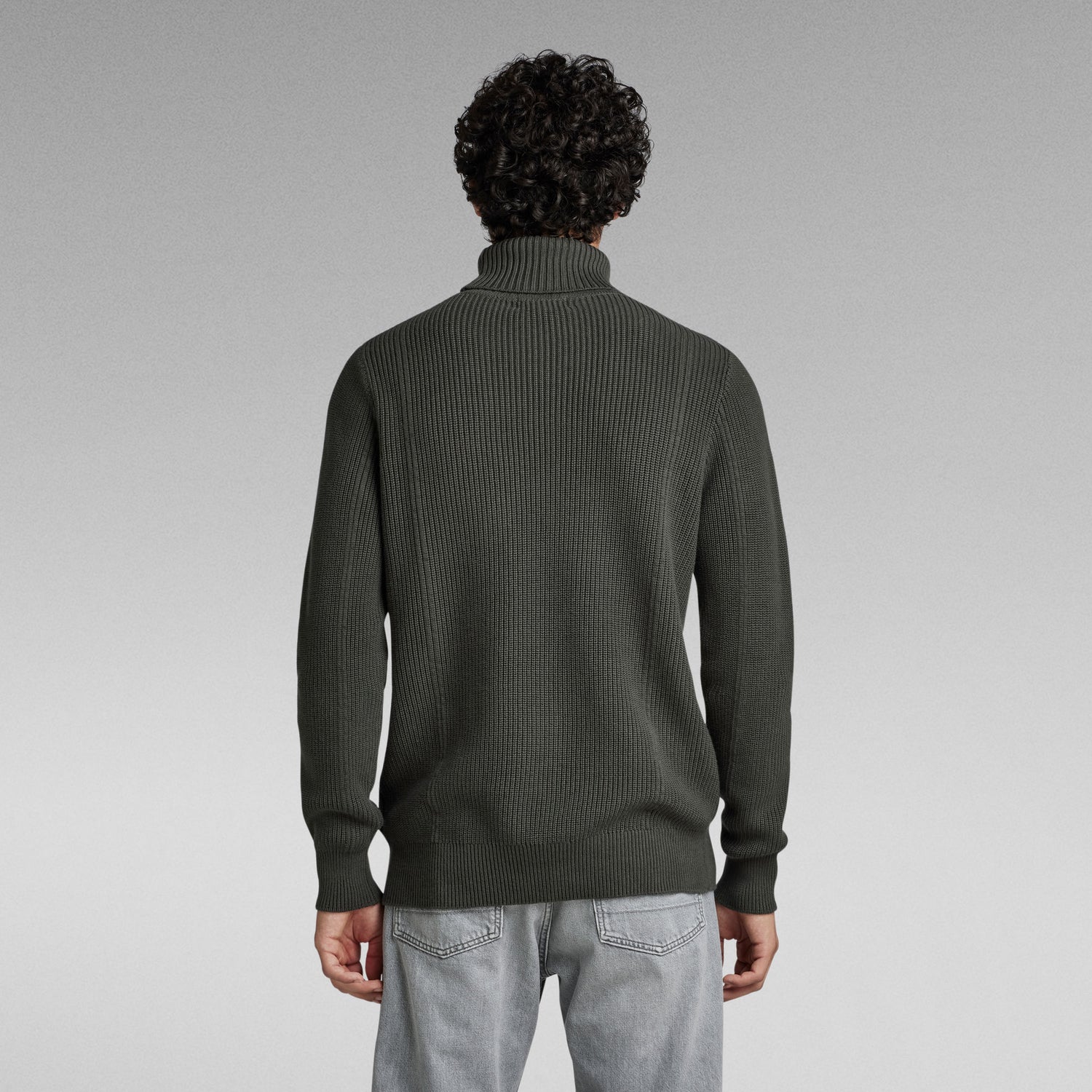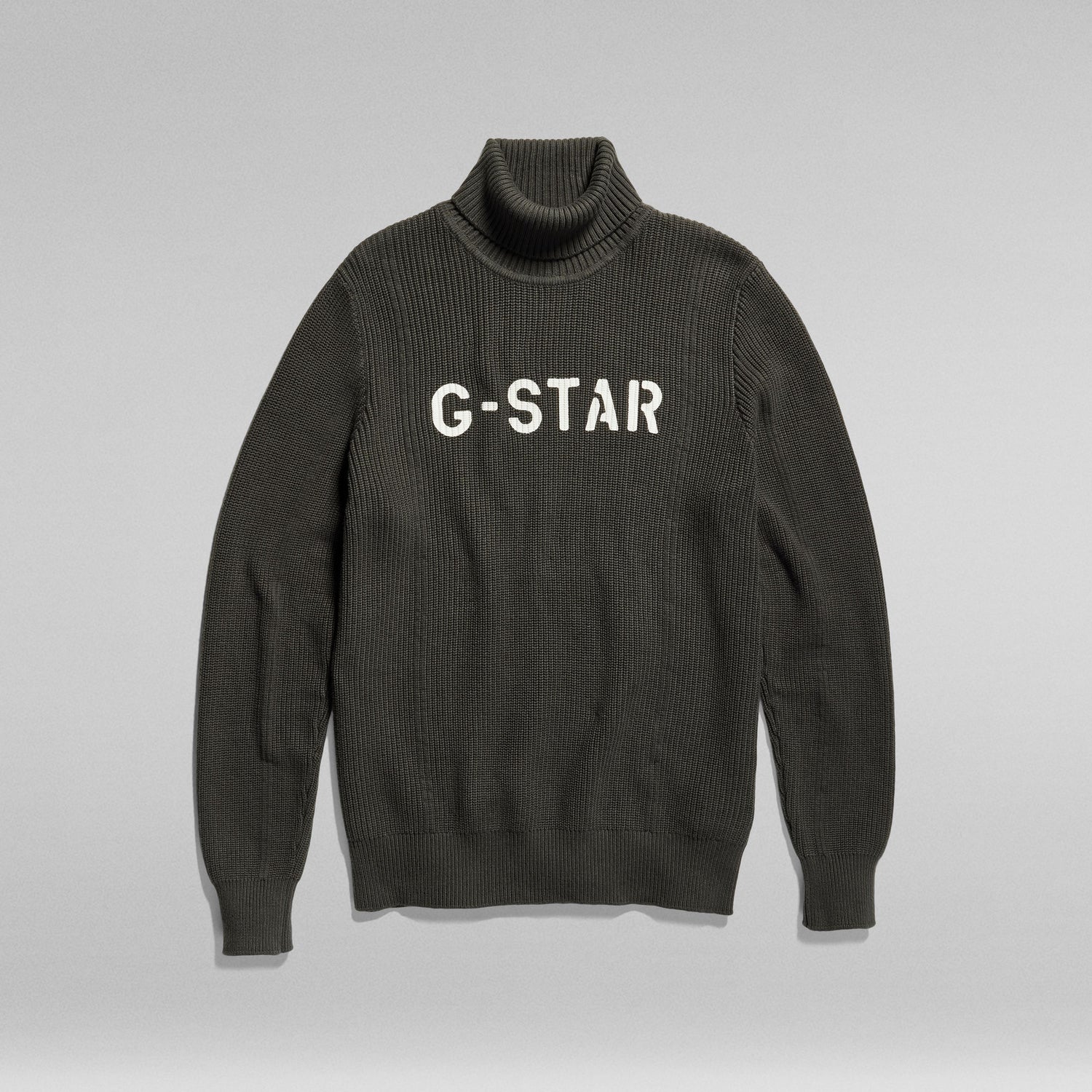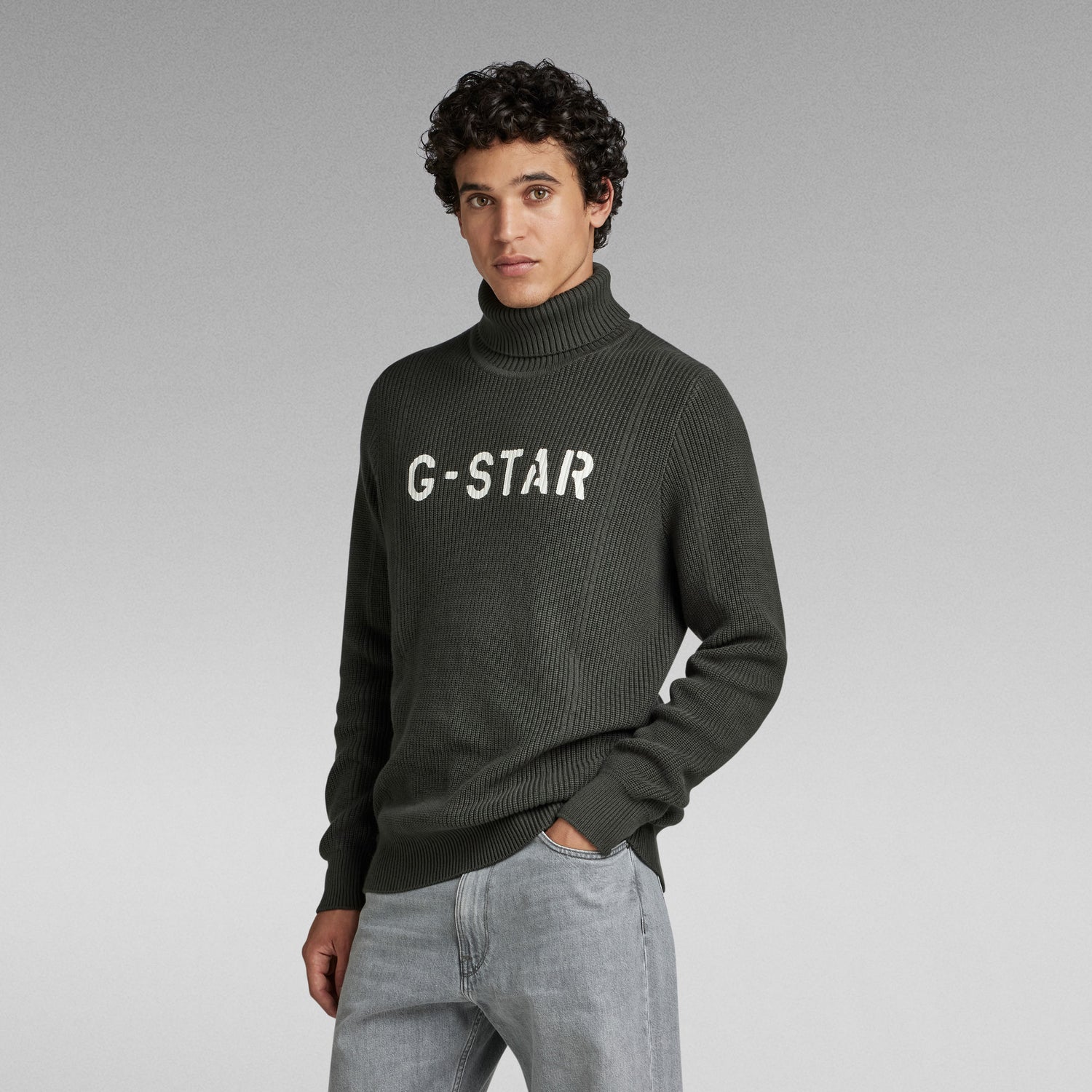 Cod.GSD21949-4426 Maglia dolcevita lavorata a coste con logo a stencil sul davanti. Orlo e polsi a costine.