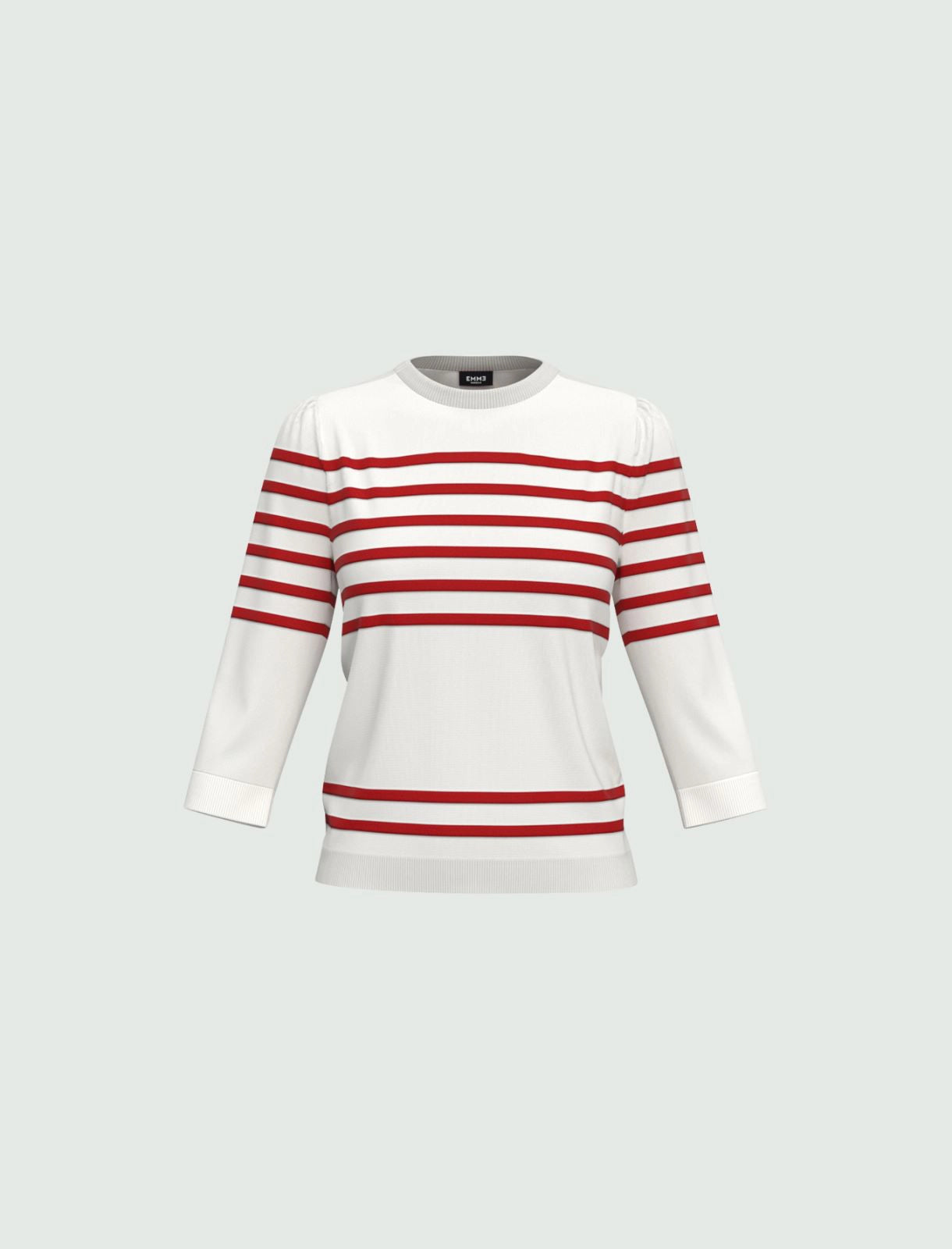 Cod.SOGLIO Maglia in viscosa stretch con lurex, linea dritta. Scollo rotondo, maniche a tre quarti.