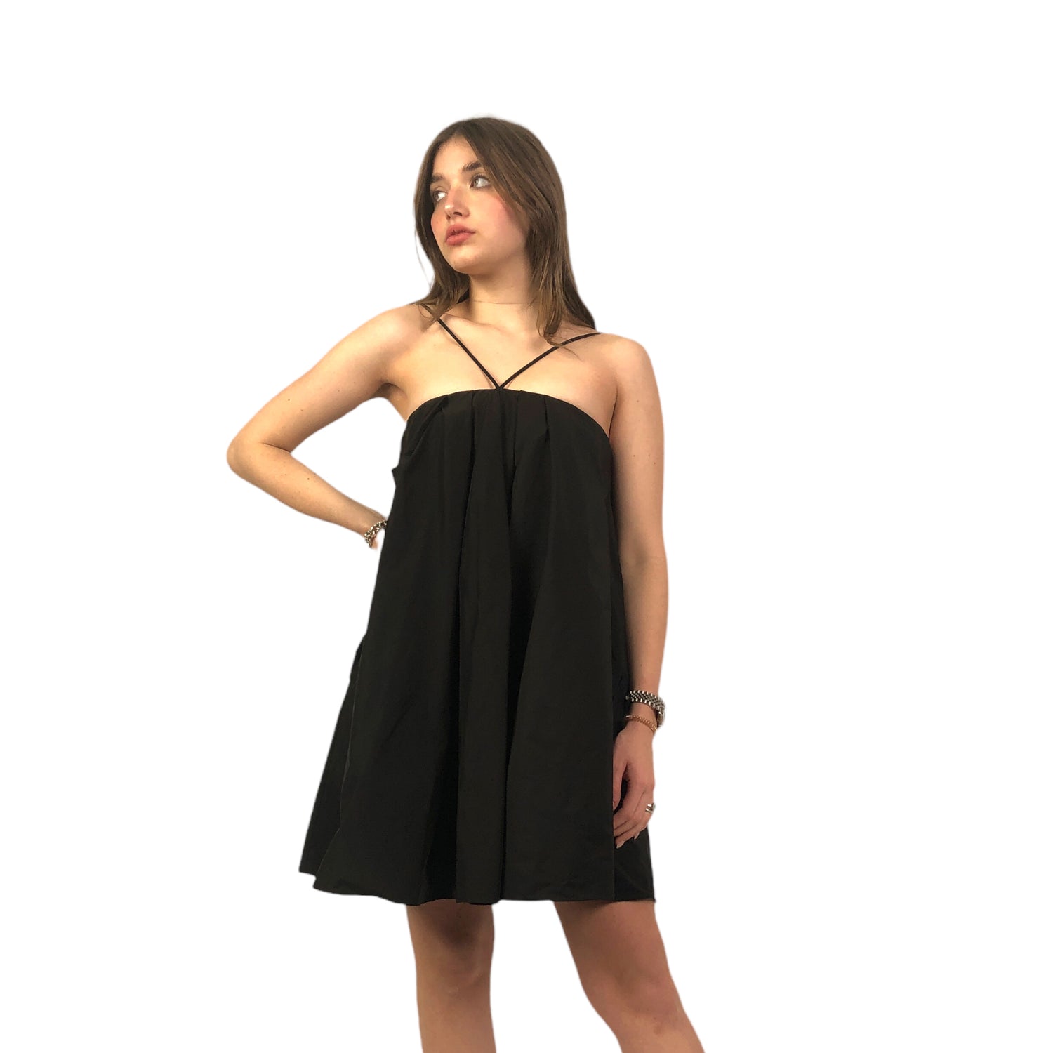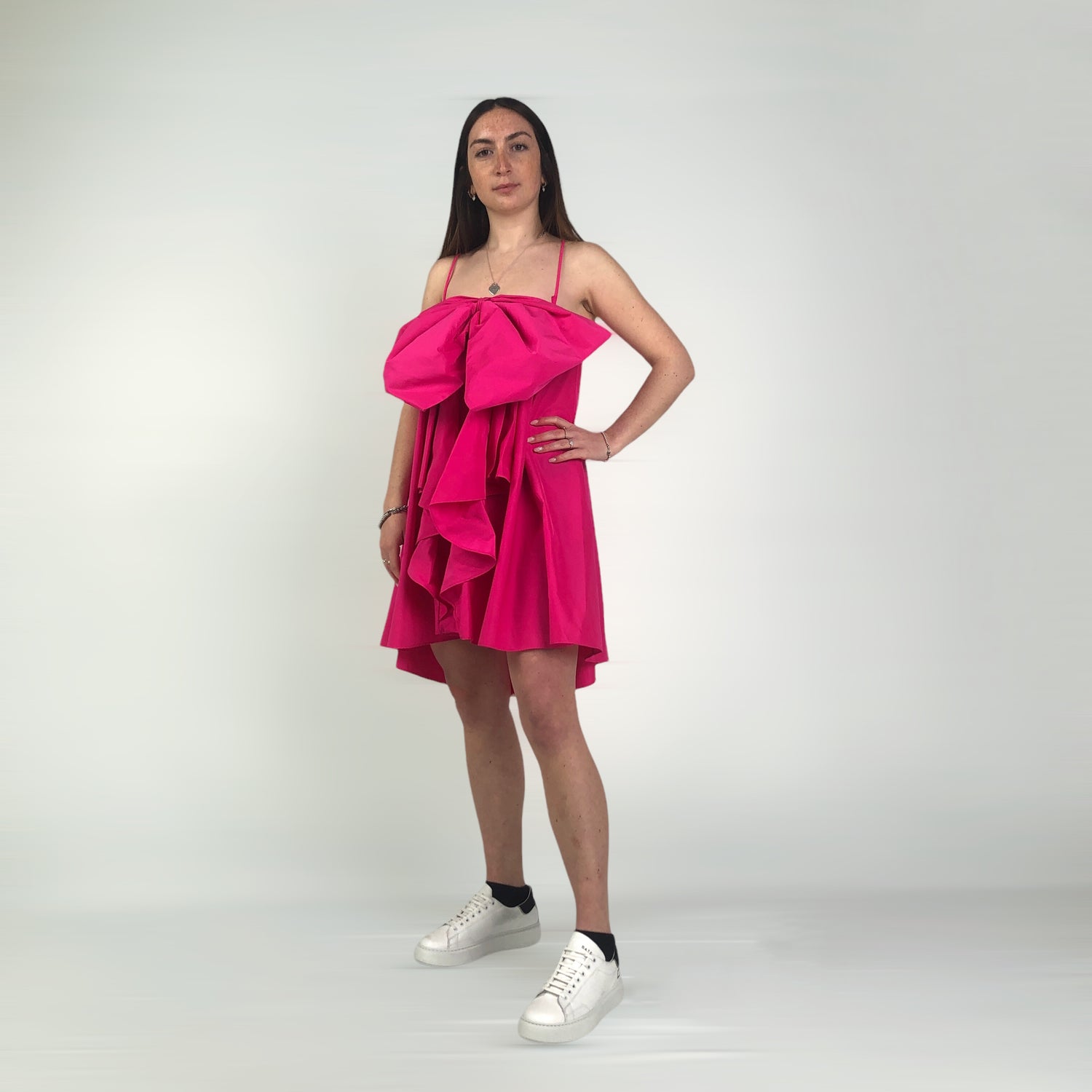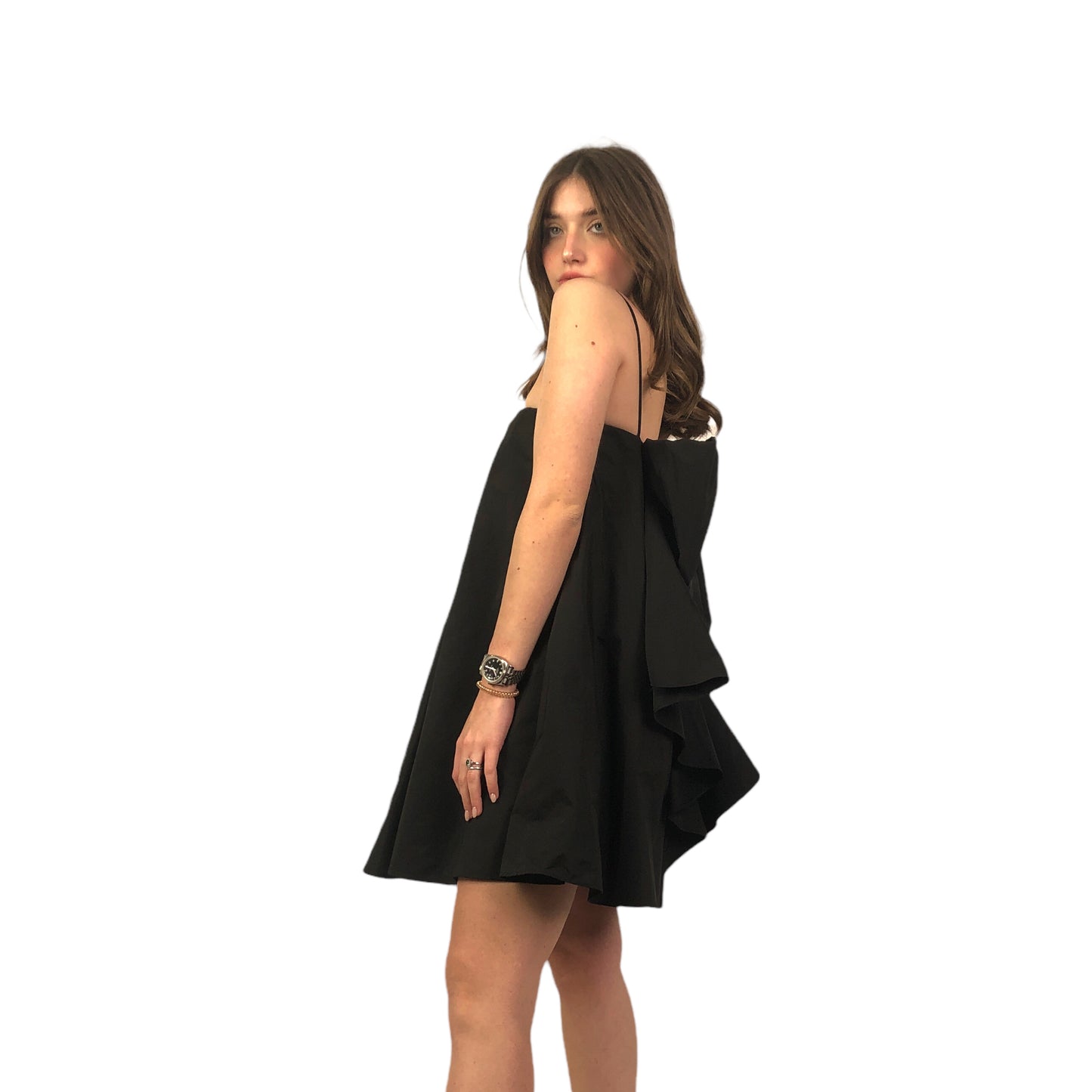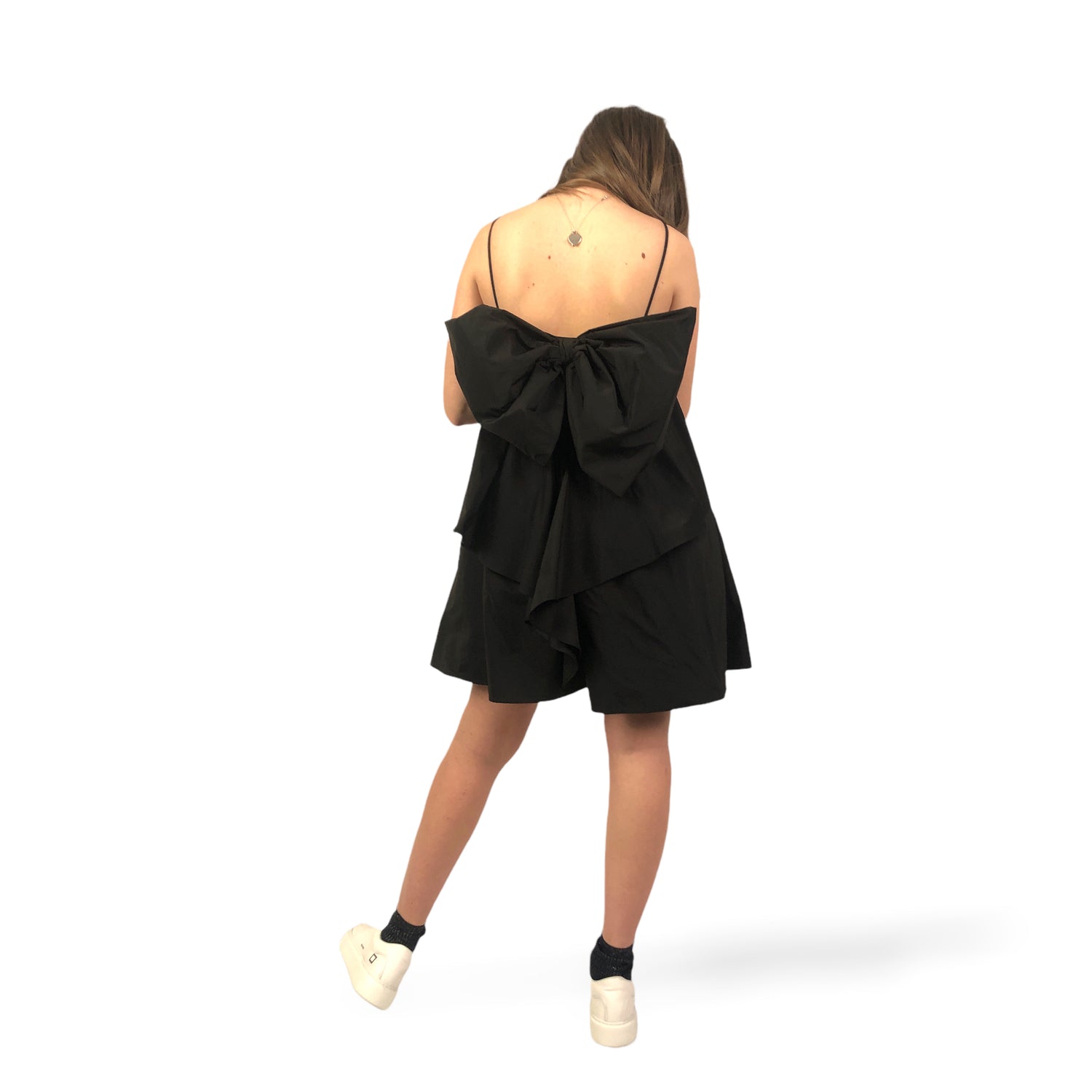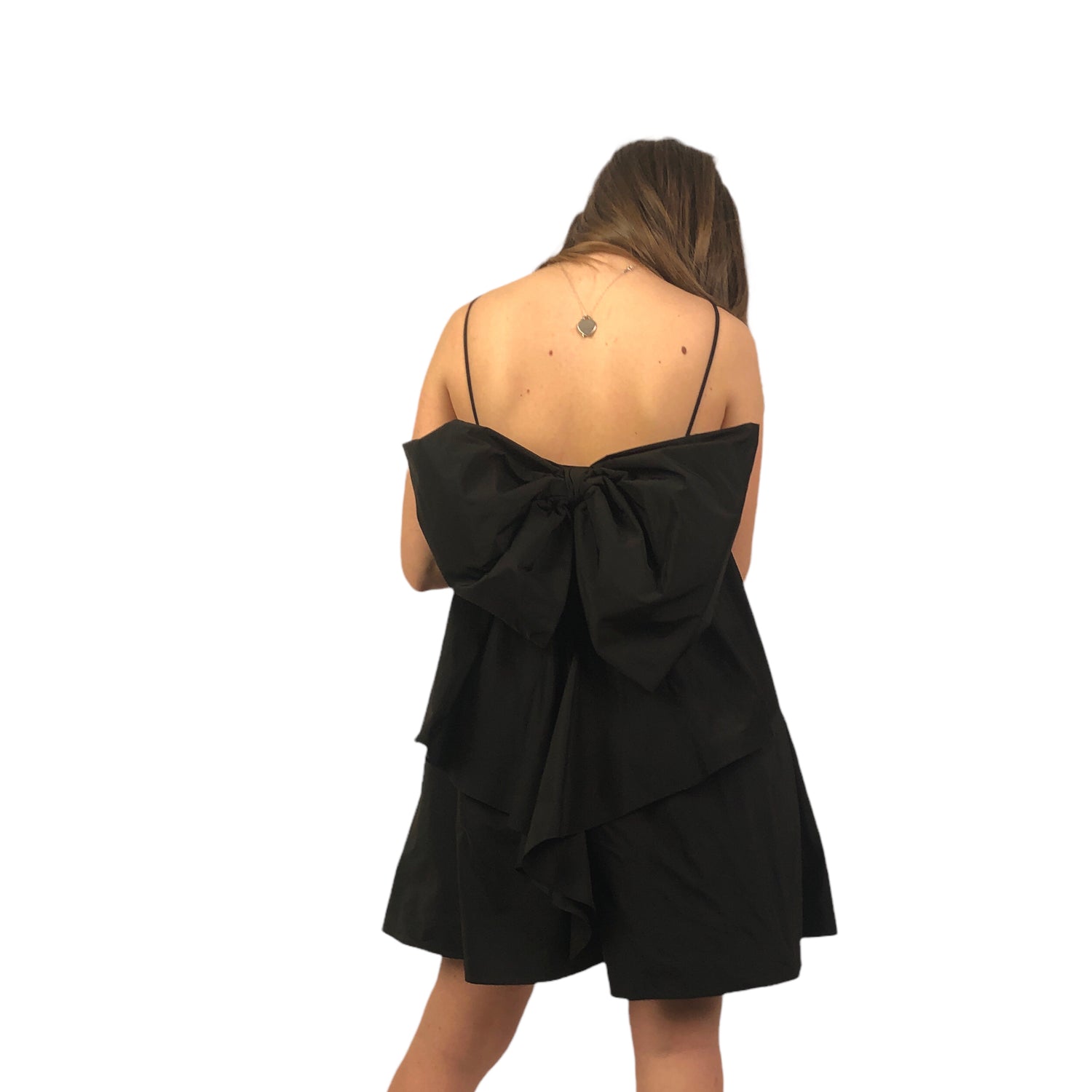 Cod.185377-BUTTERFLY Mini abito in taffetà con maxi fiocco sulla schiena e spallini sottili. Ideale per una serata o una cerimonia fashion. Da indossare col fiocco sulla schiena, ma anche col fiocco sul davanti.