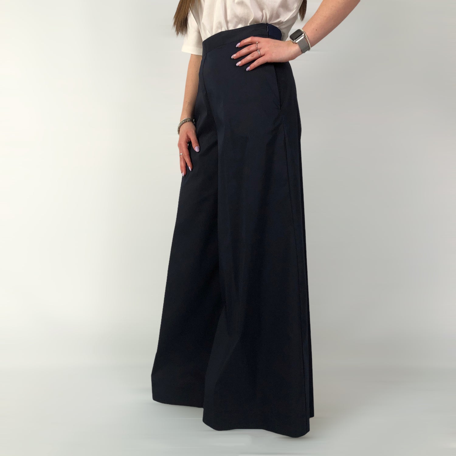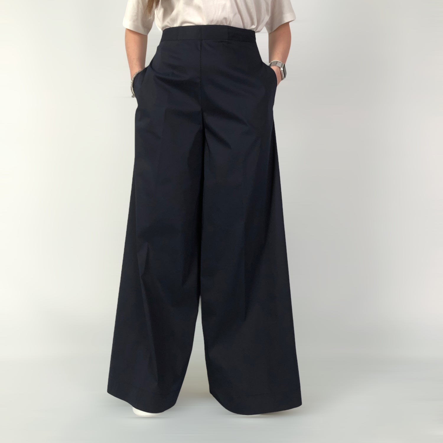 Cod.L2SK51 Pantaloni ampi in cotone stretch leggerissimo con zip sul fianco sinistro, tasche sui fianchi.
