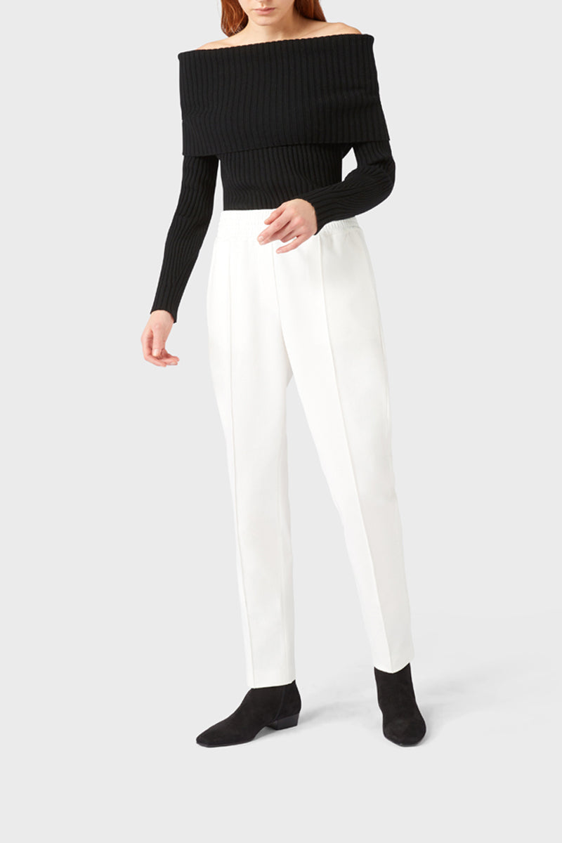 Cod.L2WI39 Pantalone in punto milano con elastico in vita, cuciture in tono al centro gamba e lunghezza alla caviglia