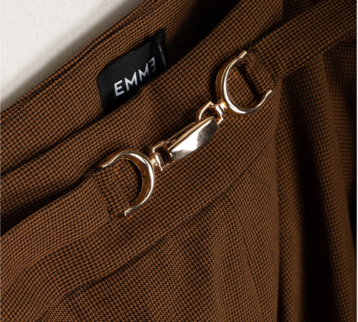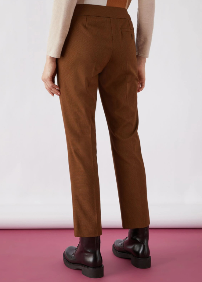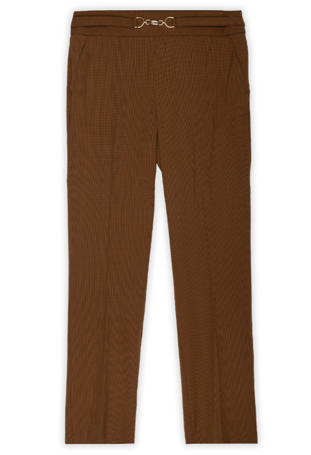 Cod.FASTO Pantaloni a fantasia dalla linea dritta con motivo a gioiello in vita, tasche a filetto sul davanti ed a filetto dietro, zip invisibile sul fianco e piega stirata fronte e retro.