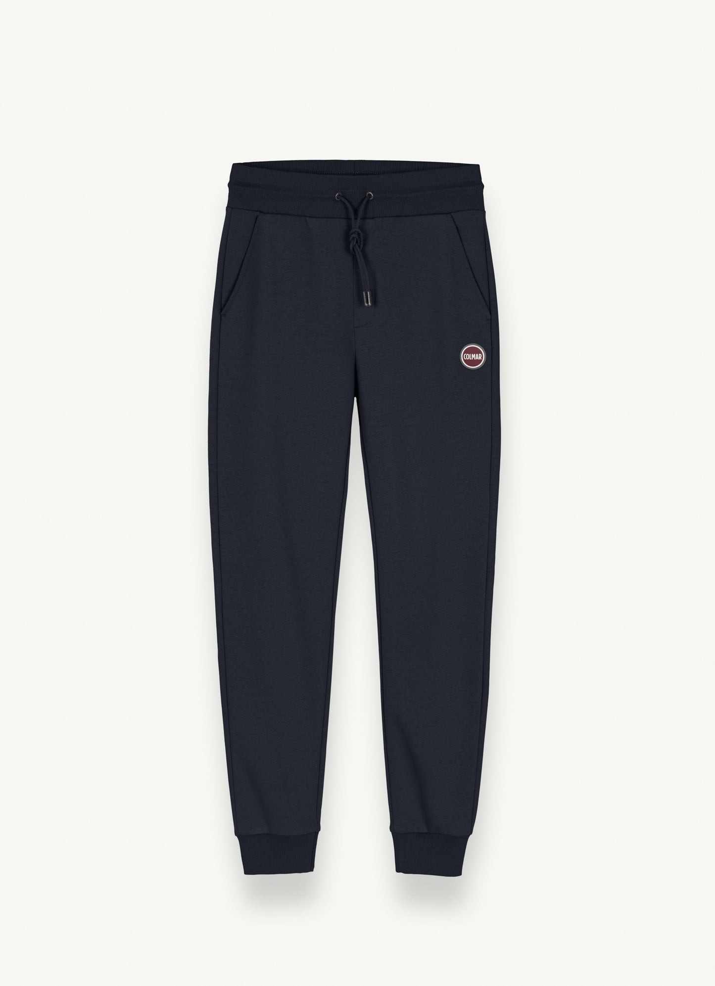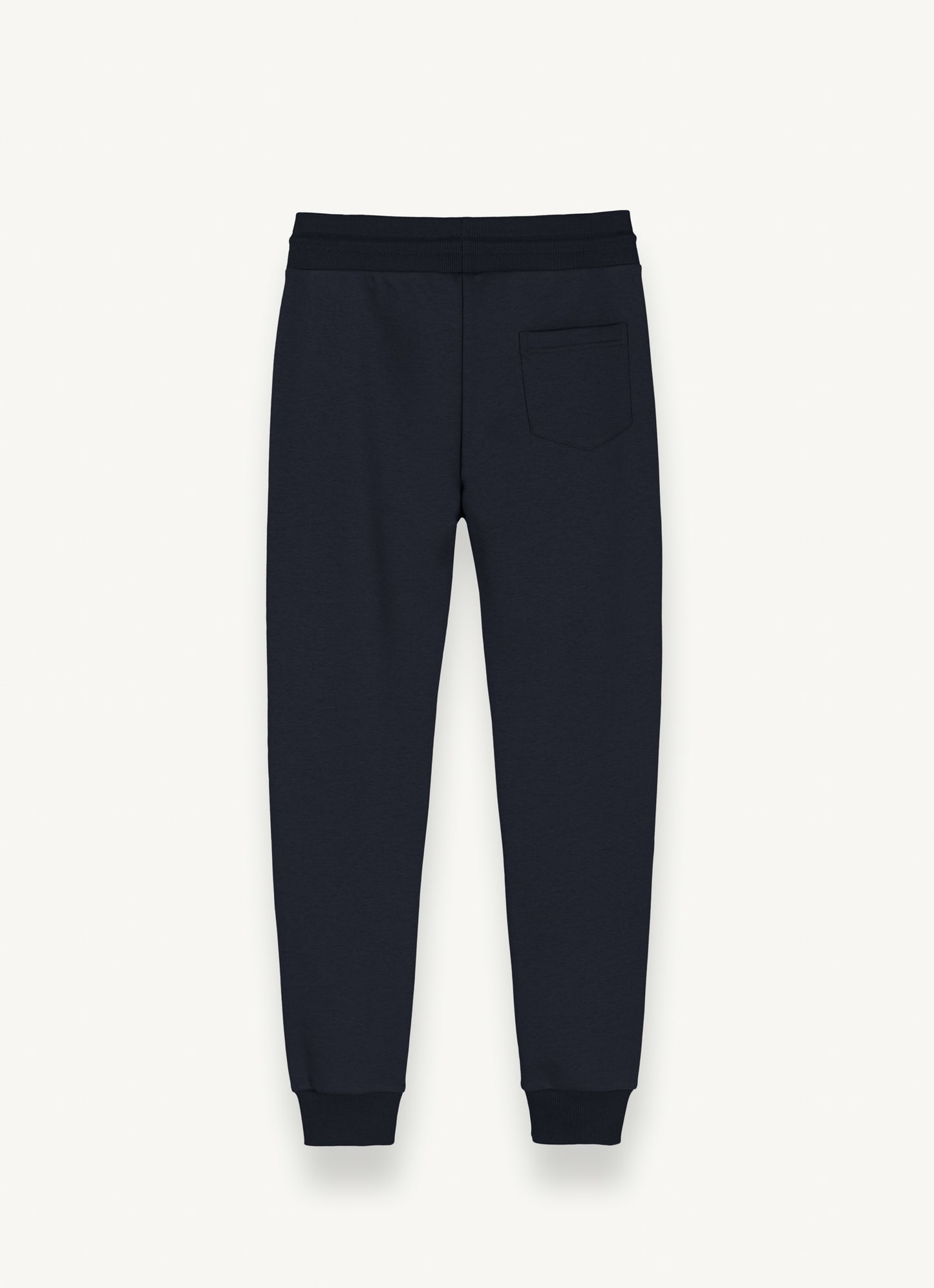 Pantaloni realizzati in tessuto garzato misto cotone. Vestibilità regolare, vita elasticizzata con coulisse, tasche laterali e taschino posteriore. Fondo in maglia a coste e logo sulla gamba sinistra.