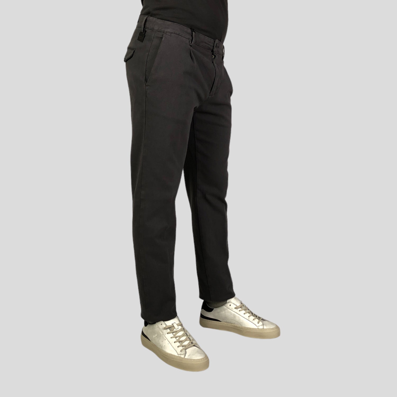 Cod.T9145-222186 Pantaloni con pinces in vita, tasche a filo sui fianchi, tasche posteriori con pattina e bottone. Chiuso con zip e bottone. Passanti in vita. Made in Italy