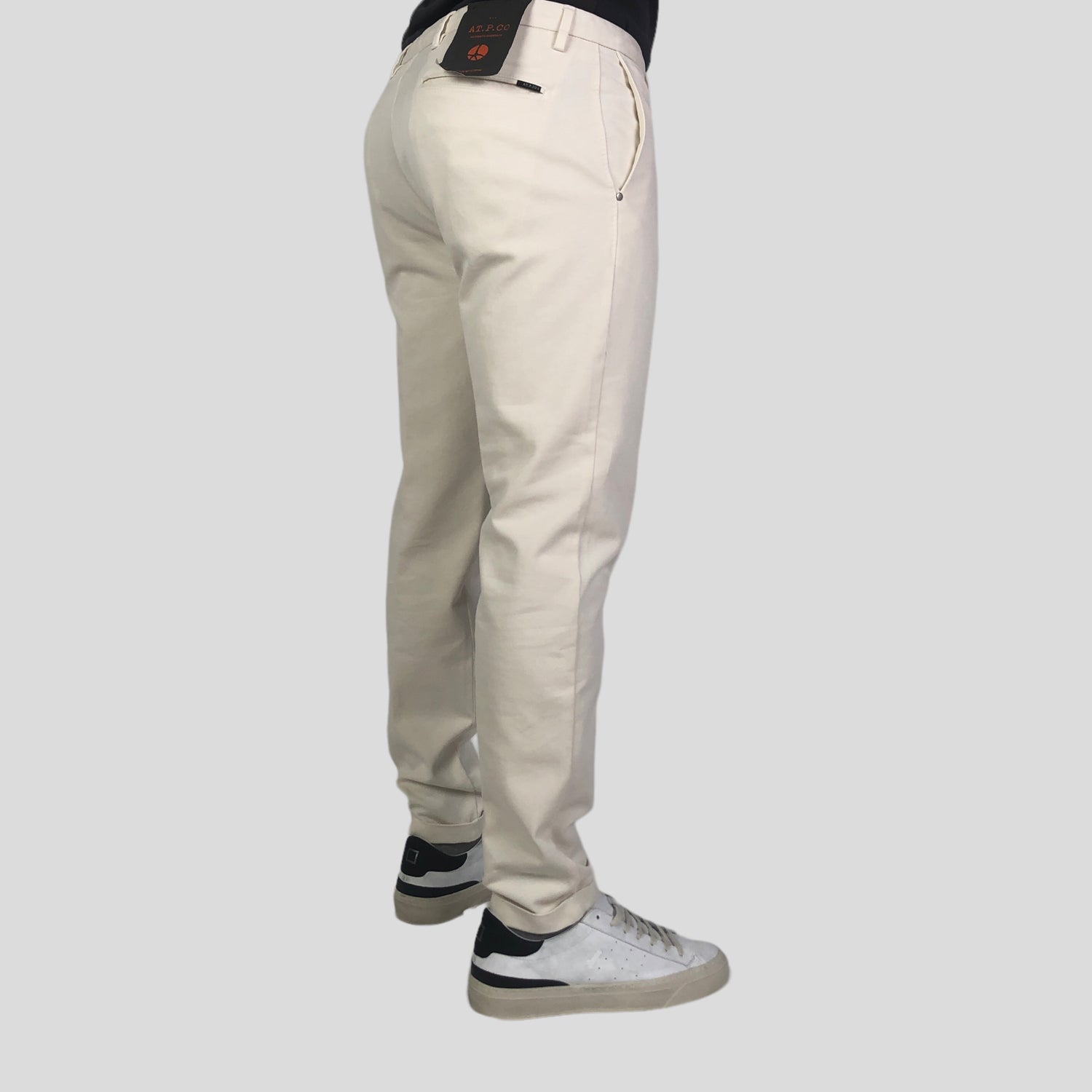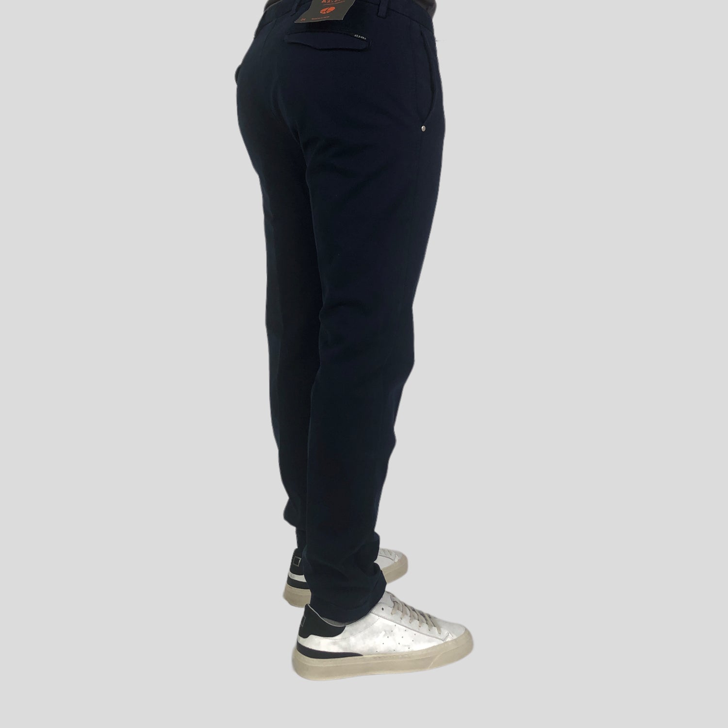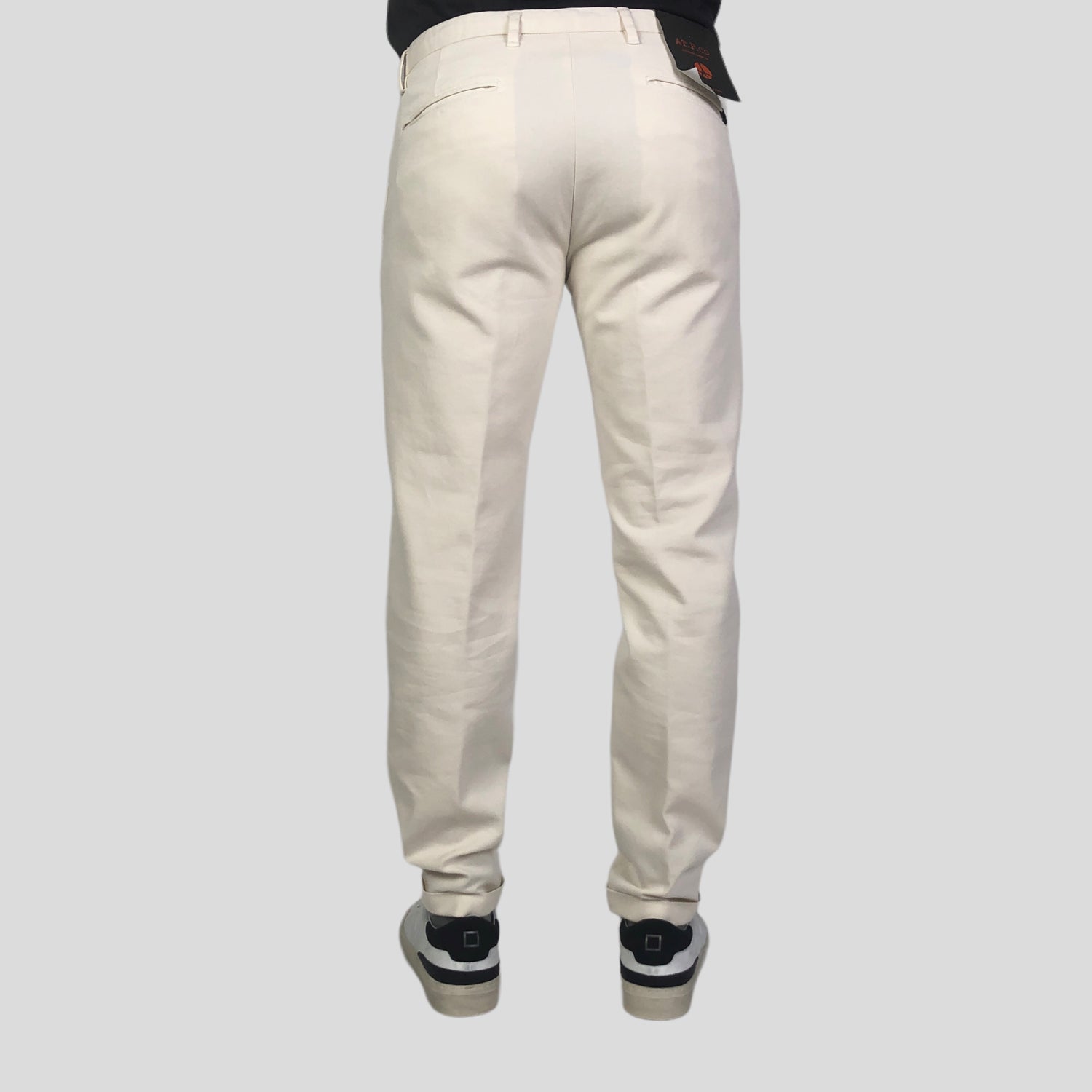 Cod.A251-SASA45-ITC901/TX Pantaloni in cotone stretch con tasche a filo sul davanti e posteriori con pattina. Chiusi con zip e passanti in cintura.