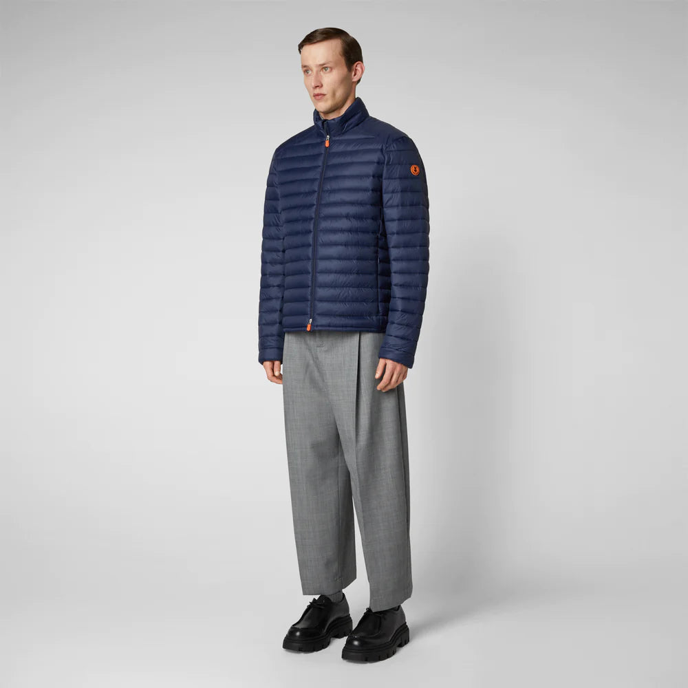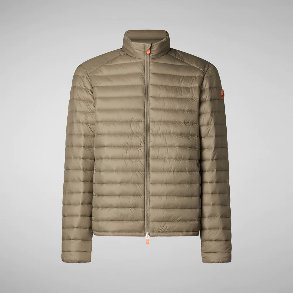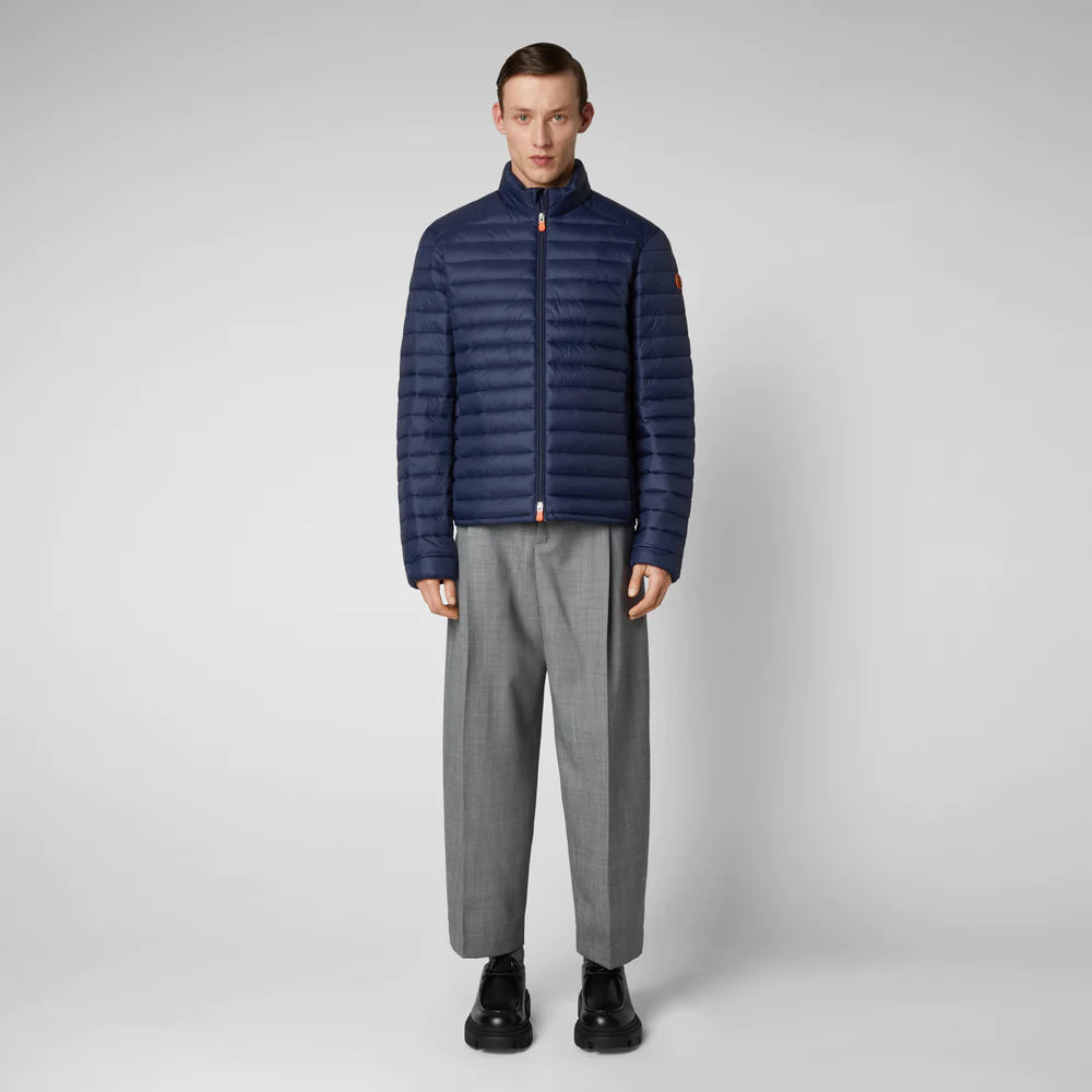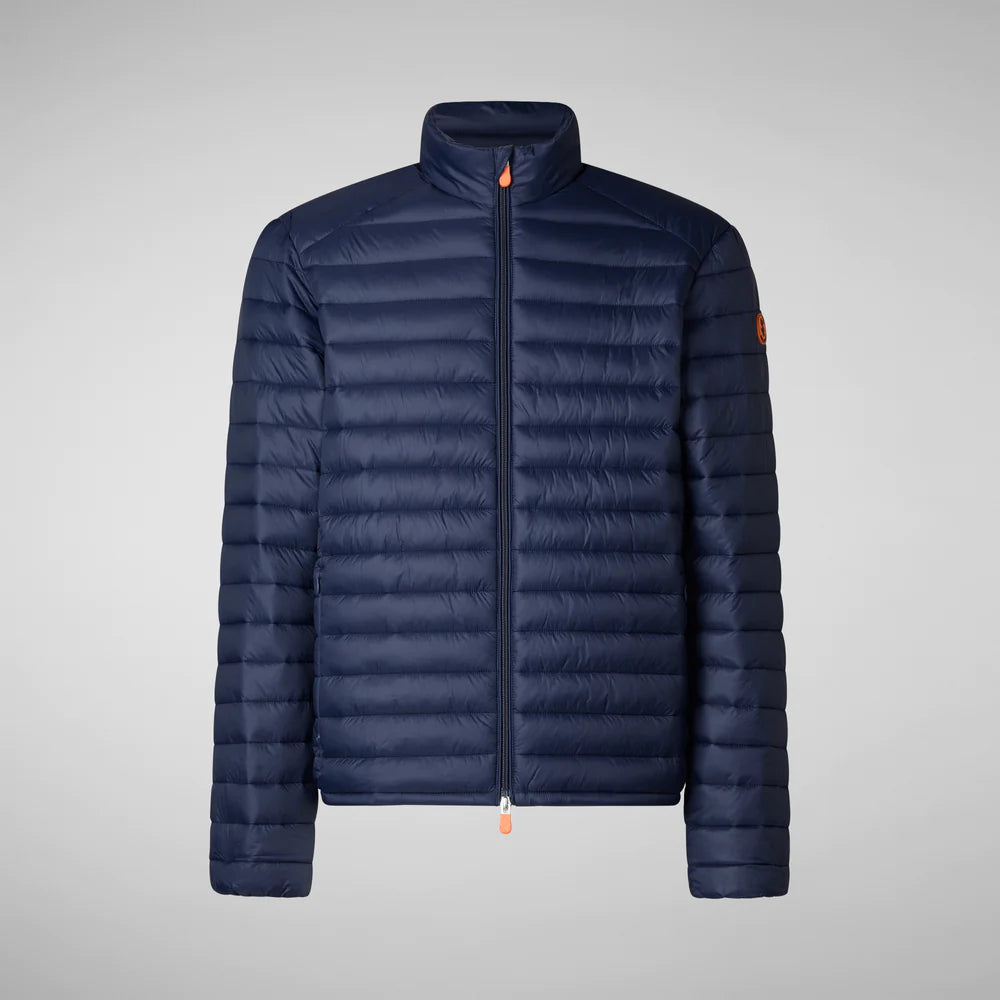Piumino animal-free realizzato in nylon leggero e idrorepellente. Tagliato con colletto alla coreana, il modello ha tasche laterali chiuse da zip invisibili, tirazip personalizzati aranacioni e il logo tondo in gomma sulla manica sinistra.